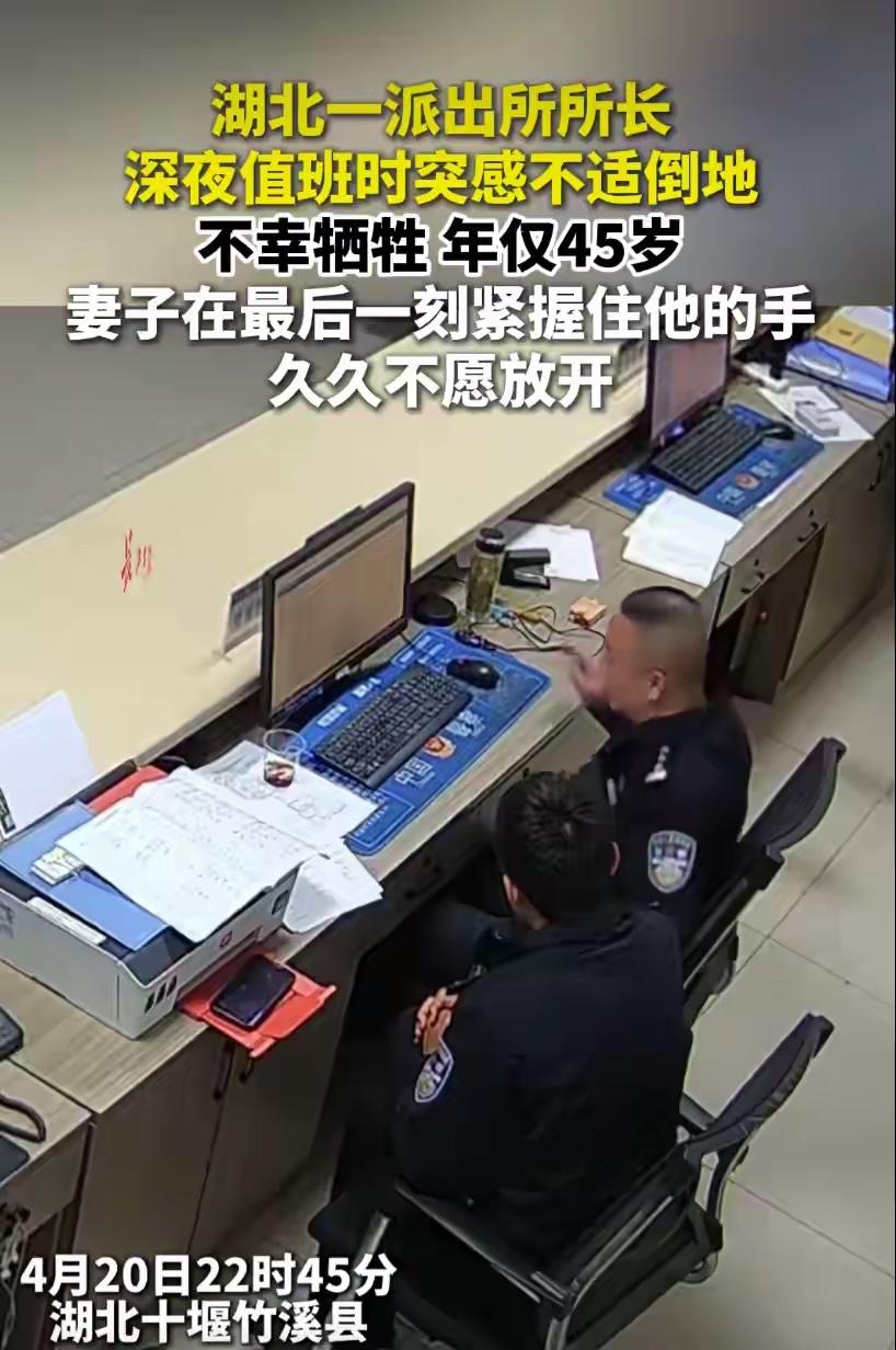 毛新宇突然去世,最伤心人的莫过于他的家人 湖北省竹溪县公安局龙坝派出所所长 毛新宇值班时突感不适倒地,送医抢救无效牺牲,年仅45岁,他45岁,妻子估计40岁左右,他与妻子携手走过十多年的岁月,在他生命最后一刻,妻子紧握住他的手,久久不愿放开,如今他妻子再也没有宽阔的肩膀可以依靠了,一定是痛彻心扉;他45岁,估计他的孩子还没有成家立业,以后他的孩子再也没有父亲的呵护和陪伴了,他的孩子一定特别伤心;他45岁,估计其父母70多岁,白发人送黑发人,老年丧子之痛无以言表 毛新宇,1980年出生,湖北省竹溪县人。从警25年来,毛新宇从一名辅警成长为派出所所长,辅警成长为派出所所长,也算是十分优秀的了,45岁,正是干事业的黄金时期,真是令人扼腕叹息! 基层公安工作还是很辛苦的。国家失去了个好公仆,父母失去了个好儿子,妻子失去了个好丈夫,孩子失去了好父亲,愿毛新宇所长一路走好,家属节哀!