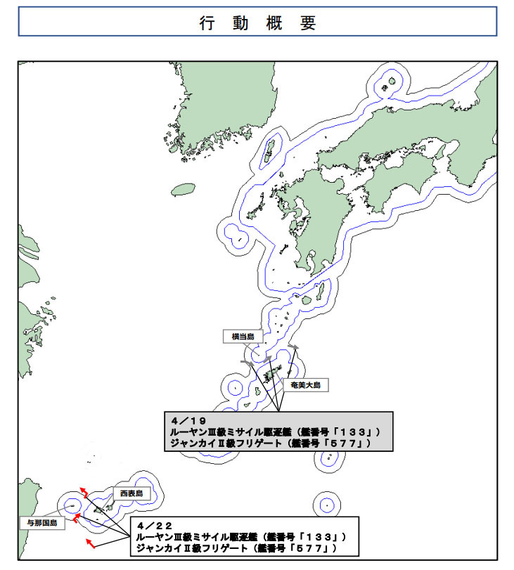133包头舰与577黄冈舰昨天经与西水道返回东海。此前两舰于4月19日经横当水道进入太平洋。