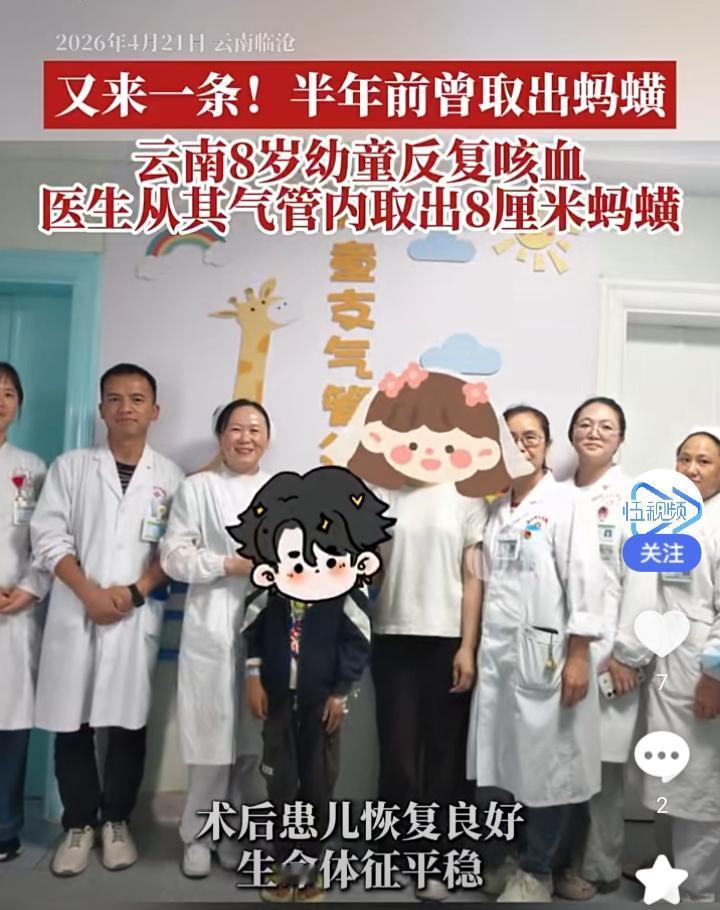 这事儿看得我头皮发麻 4月21号 云南临沧市人民医院 从一个8岁患儿气管里 取出一条8厘米的活体蚂蟥 这玩意儿 活生生在孩子身体里待了多久啊 患儿反复咳血十余天 家长一开始没当回事 谁能想到 半年前孩子刚从鼻腔取出过一条蚂蟥 这次直接卡到气管里 太危险了 医生紧急手术才把活蚂蟥取出来 想想都替孩子遭罪 医生特意提醒 直接喝山泉水风险极大 山泉水看着清澈 里面藏着不少寄生虫卵 尤其是孩子 身体抵抗力弱 千万别图方便直接喝 给孩子喝水 一定要烧开 咱们当家长的 平时多上点心 别让孩子喝生水 别去野外喝不明溪水 孩子身体不舒服 别拖着 及时就医才是正理 愿每个宝贝都健健康康 平平安安长大