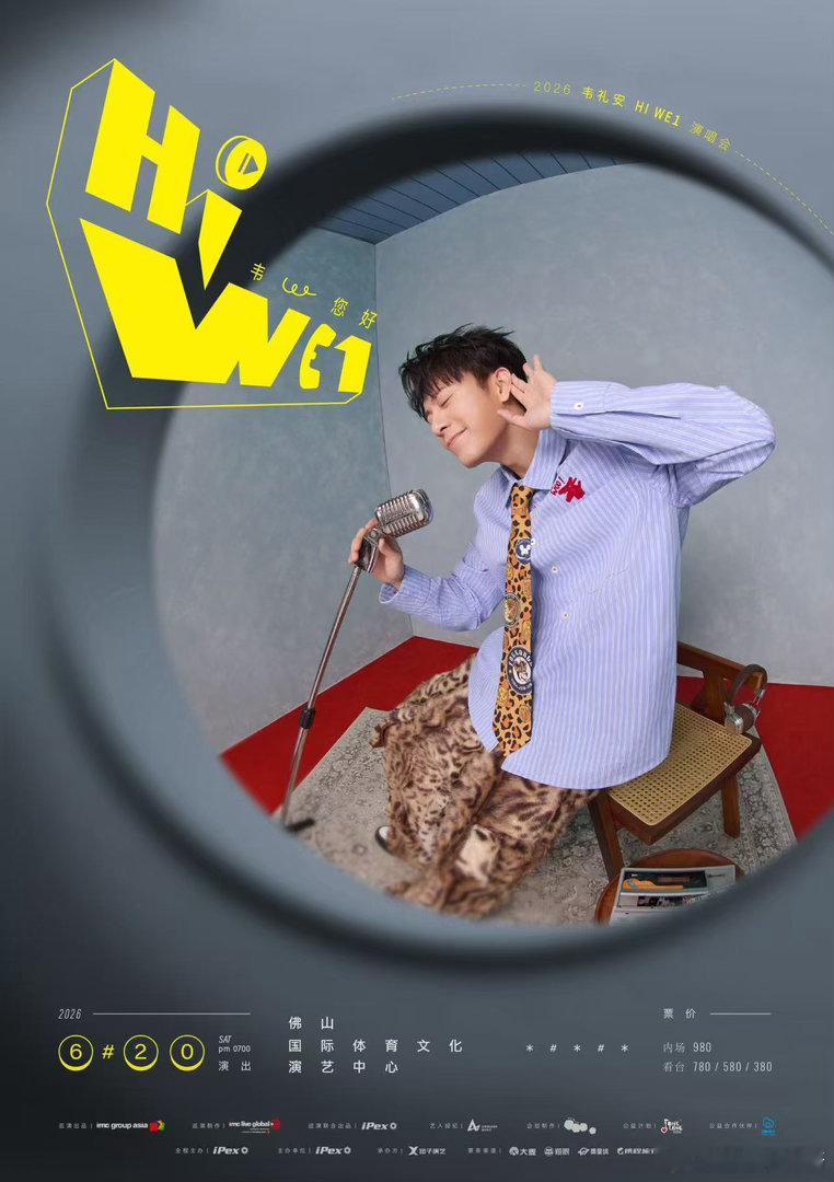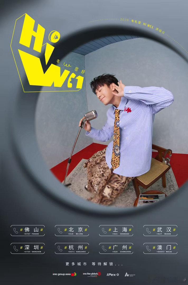 韦礼安2026巡演官宣8城韦礼安2026佛山演唱会官宣 「HI WE1 韦,您好」不止是巡演主题,更像是韦礼安对歌迷说的一句悄悄话。我来了,我唱了,你听见了吗?八座城市的回音,就是这个夏天最浪漫的声响。