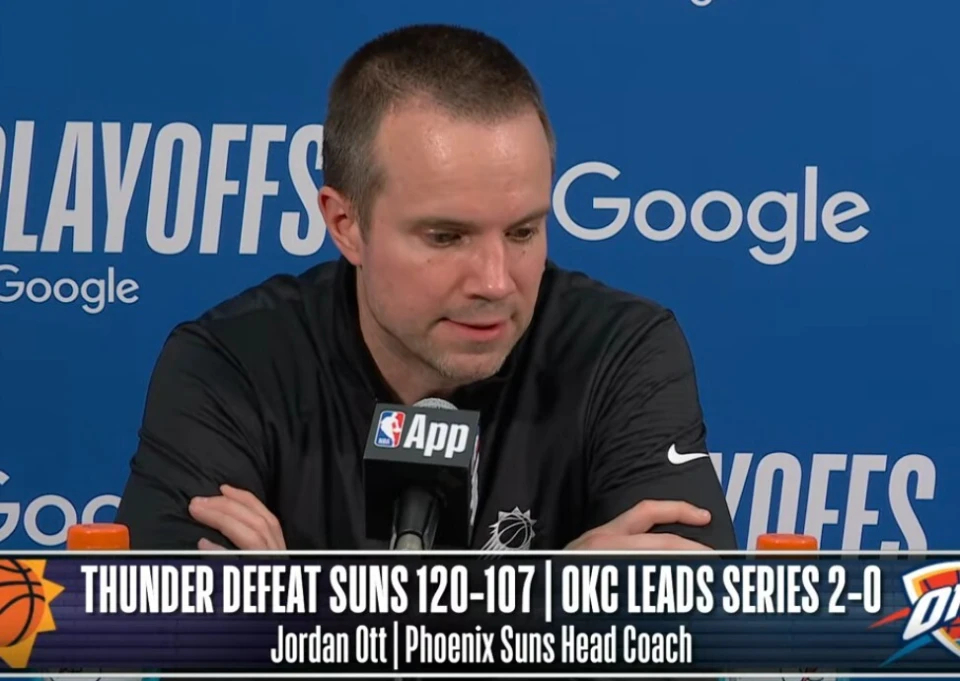 太阳主帅称希望看到一致的判罚【太阳主帅:季后赛该有季后赛的样子,我们希望看到一致的判罚】太阳主帅称我们还有机会北京时间2026年4月23日,NBA季后赛西部首轮第二场,菲尼克斯太阳队客场以107比120不敌俄克拉荷马城雷霆队,系列赛大比分0比2落后。比赛中太阳队在判罚、失误控制和防守端暴露了一些问题。赛后,主教练乔丹-奥特出席新闻发布会,面对媒体提问时语气平静但态度坚定,重点谈及球队调整方向,同时对部分判罚表达了困惑。