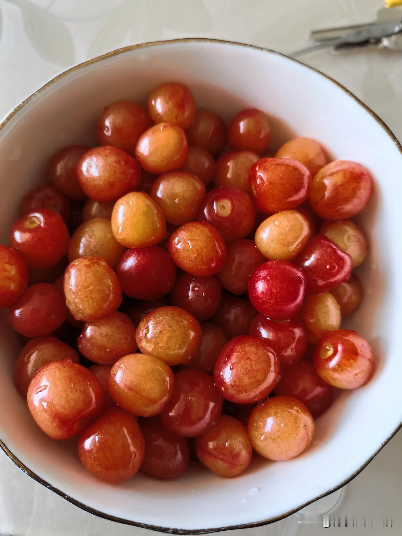一碗樱桃6元钱,填满了我的味蕾,从雇主家吃过午饭,洗洗刷刷把厨房打扫干净,刚好1点,提上厨房垃圾下楼。 出雇主家小区到马路上遇到一大姐,推着一个三轮车,三轮车放了两篮子樱桃,10元一斤,我一个人在家,买多了一放就坏了,我说来半斤就够了。 大姐一捧倒进袋子,刚好六元,回家洗洗就一小碗。 下午的时光,一边刷手机,一边吃樱桃。