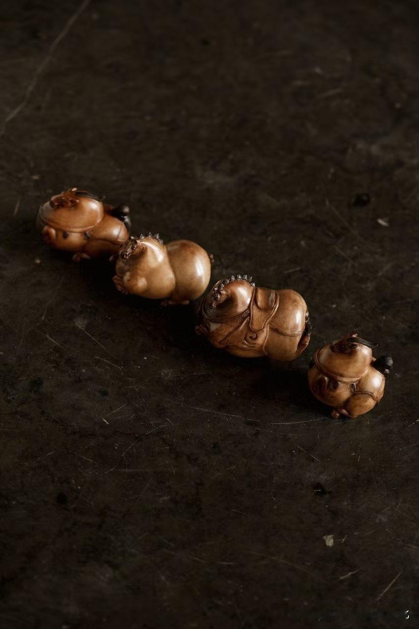 鹿角|唐马 不是奔腾的气势, 而是一种收住的从容。 四匹小马,各有姿态, 或昂首,或回望,或静立, 体态丰腴,却不显笨重, 反而有一种盛唐的松弛与贵气。 鹿角温润,带一点自然的骨感, 光泽不张扬, 却越看越有味。 刀工不求繁密, 点到为止,留白恰好, 把“气”留住,比细节更重要。 这种东西,不是用来惊艳, 而是慢慢看、慢慢喜欢。 你更喜欢这种“收着的贵气”, 还是更张扬一点的表达?