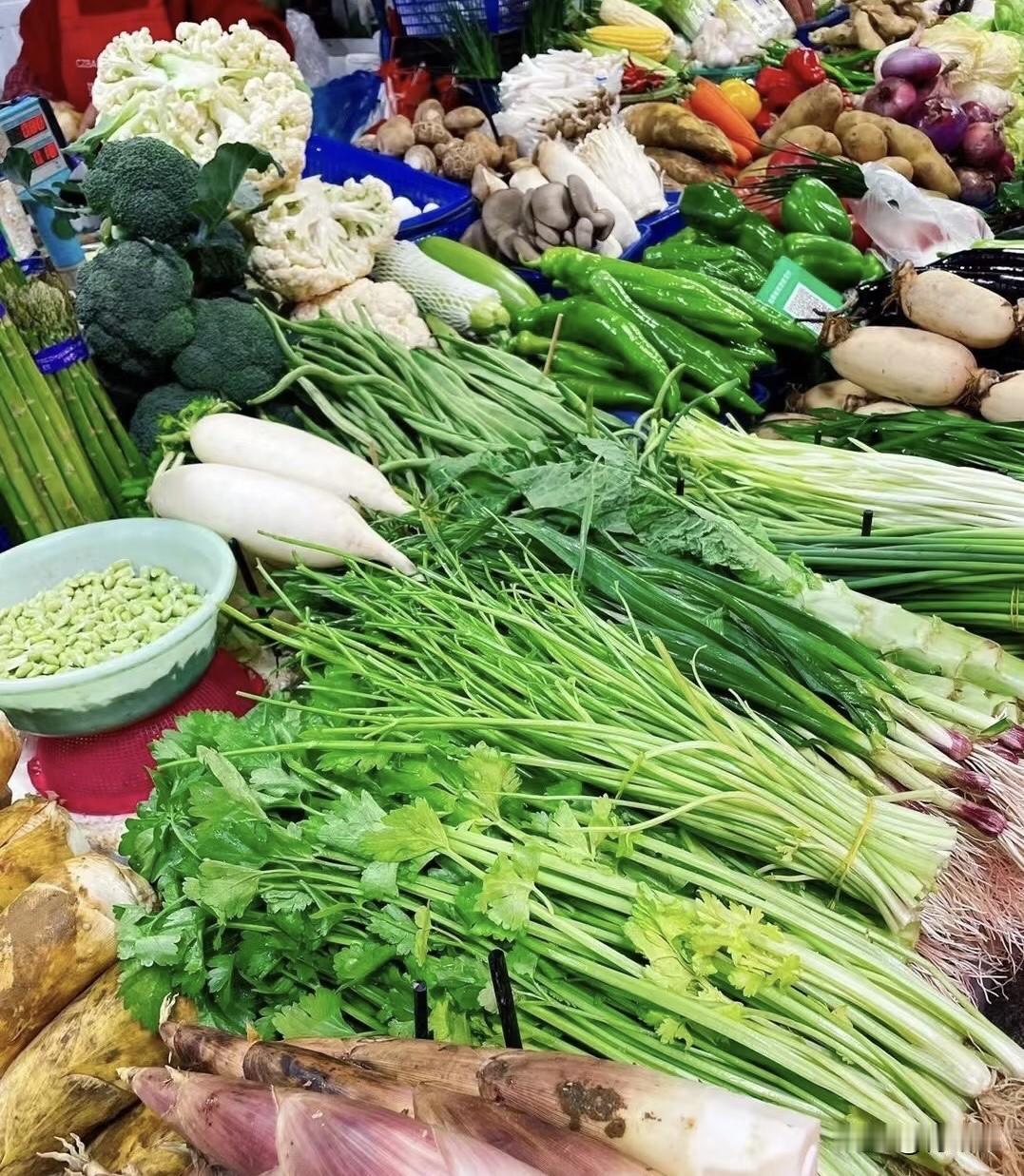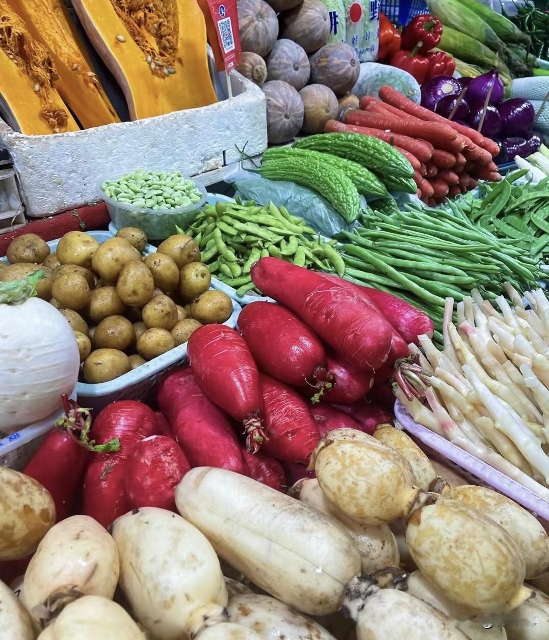 这几天下雨,清晨有点凉,还带着点雾气,里面的瓜果蔬菜已摆得整整齐齐,收拾得干干净净,看着就新鲜喜人。 外面路边还有不少菜农摆摊,卖自家种植的蔬菜,还有现炸肉圆、鱼圆、烤脆饼的。便民服务摊位磨刀、配钥匙、修伞、修拉链,沿途还有生鲜超市、水产店铺,下雨天也照样热闹,基围虾才16块一斤,蔬菜又新鲜又便宜,逛上一圈总能满载而归。晒出你的本地生活