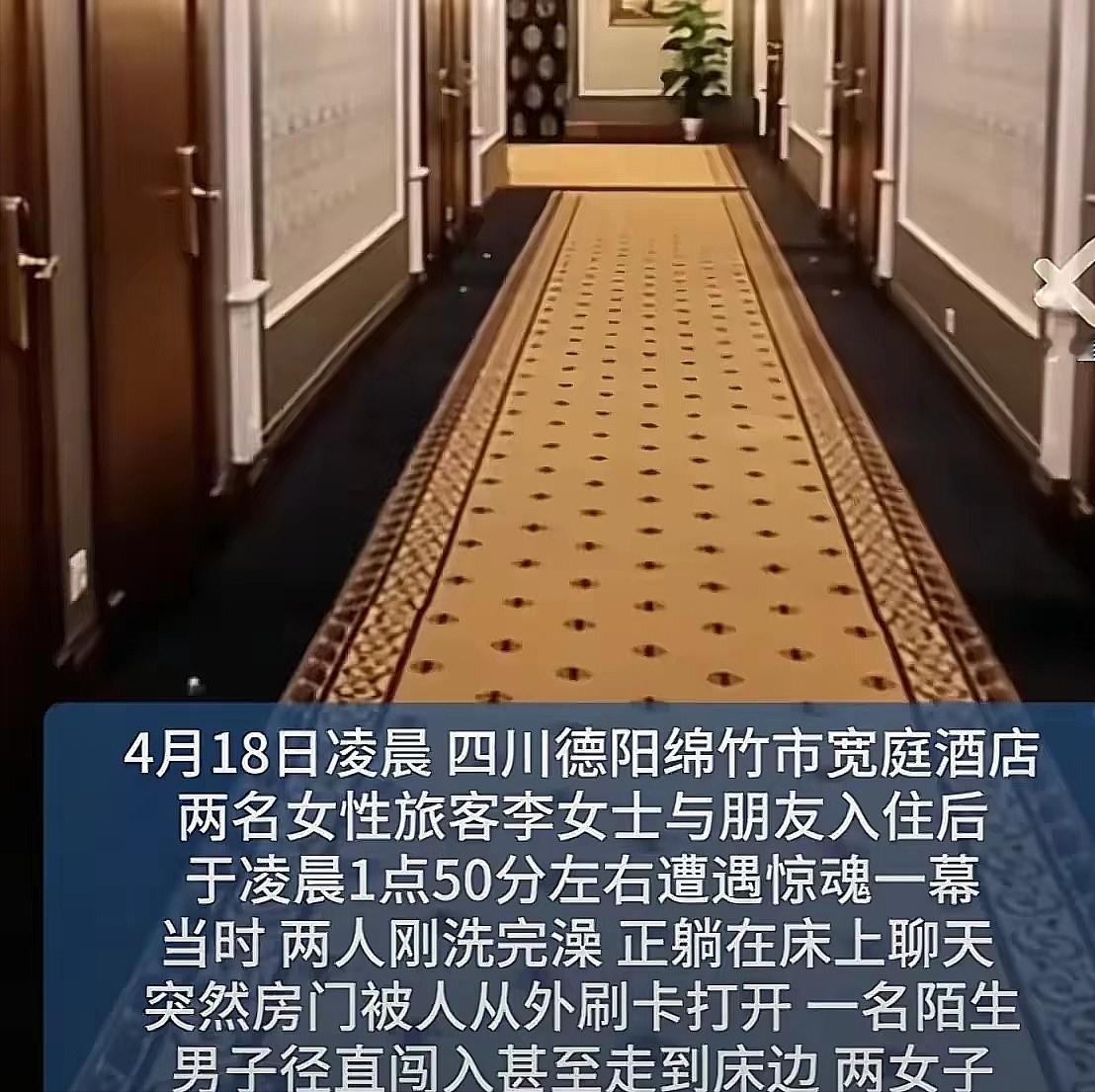 天呐!凌晨1点,两个女生在酒店房间洗完澡正躺着聊天,突然门被刷开,进来一个陌生男人!朋友连裤子都没穿…… 凌晨一点五十分,四川德阳绵竹宽庭酒店五楼的走廊里,感应灯明明灭灭。 前台手里攥着万能房卡,身旁站着一个陌生壮汉。刷卡、弯腰、一个极具礼貌的"请进"手势——监控画面把这一幕拍得清清楚楚。 小李和闺蜜刚洗完澡,穿着宽大的短袖,毫无防备地躺在床上聊天。她们以为反锁的房门是最后一道屏障,却不知道那把锁在万能卡面前形同虚设。 门锁"嘀"的一声,陌生男子直接走了进来,在床边停下,近距离盯着衣衫不整的两位姑娘。 几秒钟的惊魂,小李和闺蜜只能尖叫着拽被子遮身体。那男的愣了一下才跑出去,连门都顾不上关。 第二天去讨说法,酒店先说监控坏了。被识破后才调出画面——最可怕的不是有人闯入,而是门是怎么开的。 小李怎么也想不通:系统明明显示503房有人,前台为什么要把单身女性的房门交给陌生人? 酒店的辩解越来越离谱。先说不知道房里有人,又说是楼下洗脚城的人走错了。最后才承认是前台"手滑",太累了。 累就能把万能卡递给陌生人?这种解释漏洞大得连三岁小孩都骗不过。 更绝的是那位经理。当着民警的面,他直接把人噎了回去:"我就这态度。" 折腾到最后,酒店退了两天房费——几百块钱。 这钱能抹去隐私被看光的挫败感吗?显然不能。 但酒店算得很清楚:绝大多数人耗不起精力跟他们打官司。 安徽某酒店曾发生过类似的事。前台乱开门,女房客被猥亵。悲剧不断重演,问题就出在万能卡管理近乎"裸奔"。 前台动动手指,顾客以为万无一失的反锁就瞬间失效。这种违法成本太低,酒店才有恃无恐。 出门在外,物理反锁锁住的往往只是焦虑感。真正的安全,却脆弱地挂在酒店前台的职业道德和混乱的管理漏洞里。 当你锁上房门以为安全了,可别忘了,那把锁的权力不在你手里。 信源:滨州传媒网