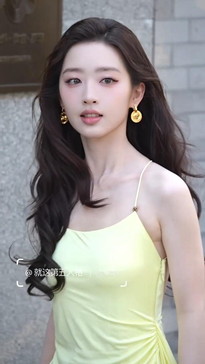 我女就这样美得毫不费力感觉连风都偏爱这个小邓恩熙🥰🥰🥰邓恩熙柠檬黄吊带长裙造型邓恩熙吊带长裙造型
