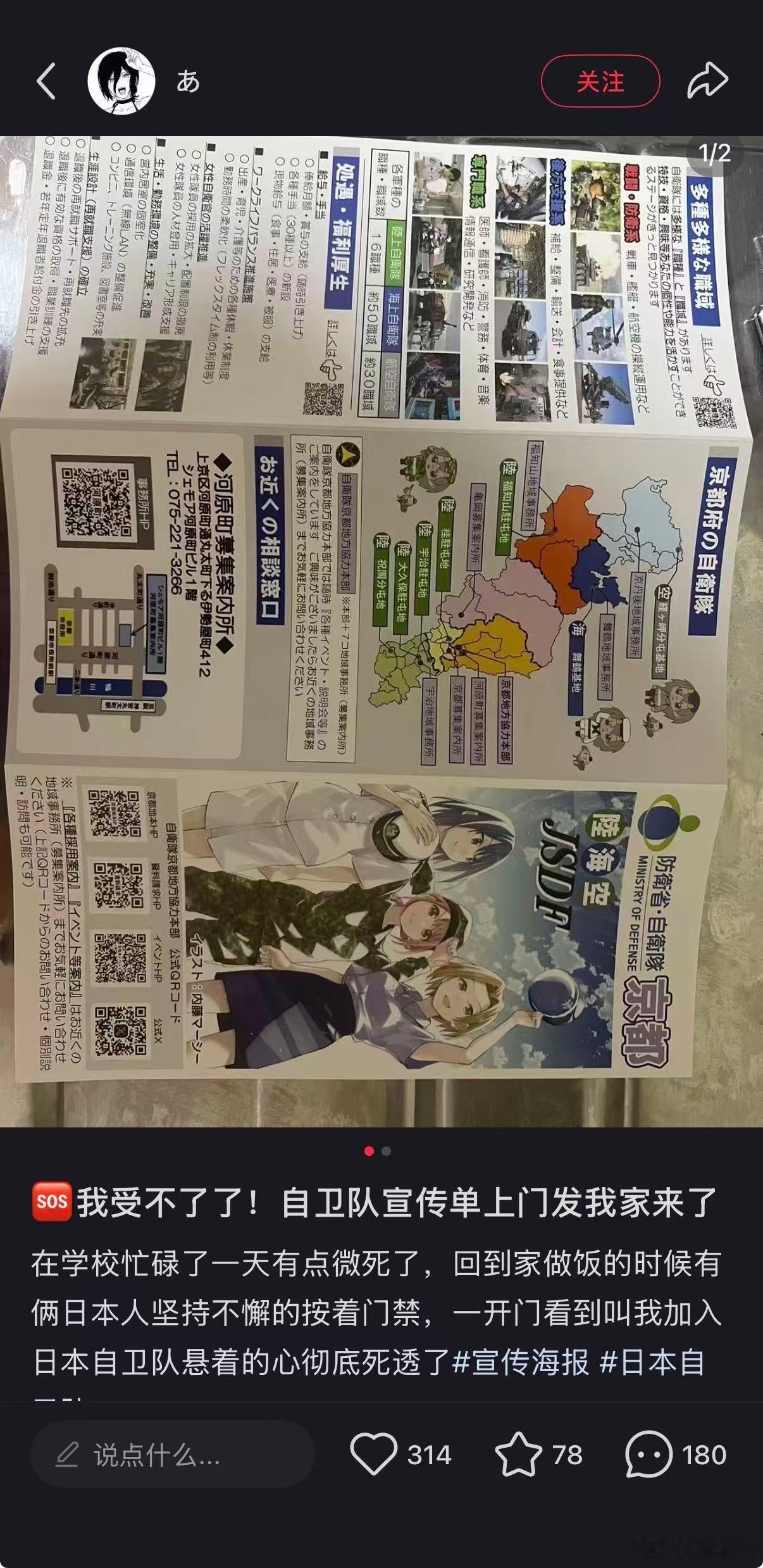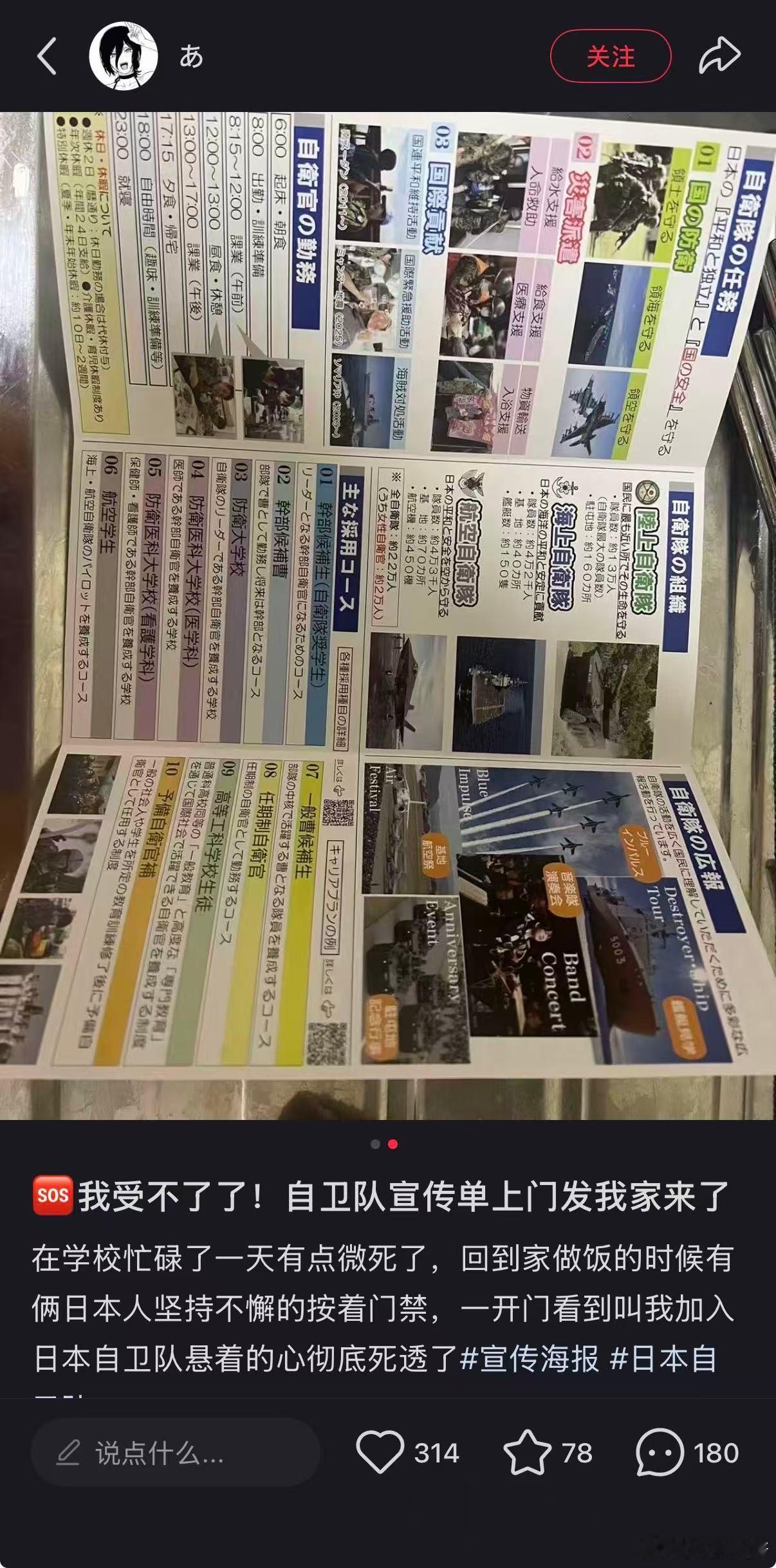 自卫队招兵宣传单发到留学生这了,看来小日子真准备赌国运了啊
