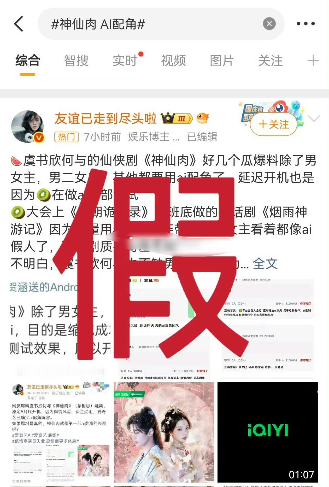 虞书欣何与的《神仙肉》除了男女主、男二女二,其他角色都要用ai配角,现虞书欣方已打假神仙肉 AI配角