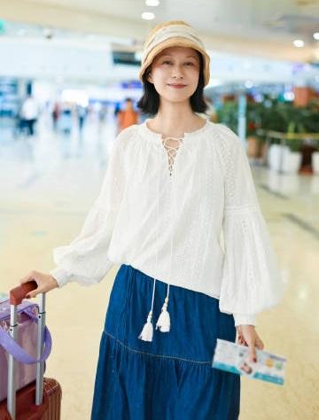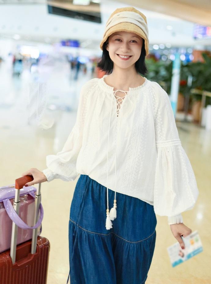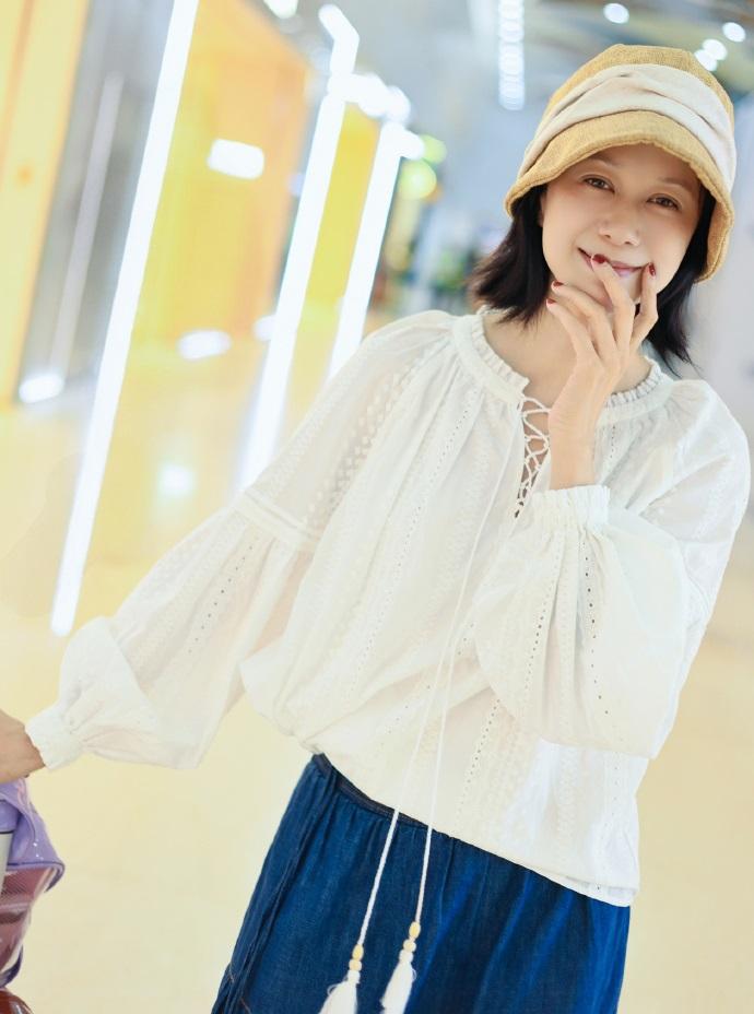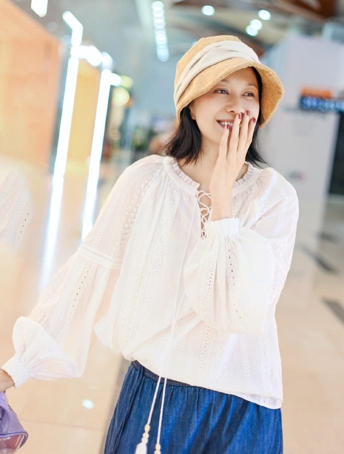 今天倪虹洁亮相香港机场,她这次搭配的很简洁,不过像个时尚的美少女。 倪虹洁上身穿白色衬衣,这件衬衣上有很时尚的镂空圆点设计,效果很出彩。她下身穿做旧风格的 牛仔裙,增添了浪漫之美。 倪虹洁的身段是极为苗条的,她这次穿的很宽松,能够让她展现出洒脱迷人的魅力。 她头戴米色渔夫帽,看上去特别的可爱,显得很有吸引力。 倪虹洁留着清新的短发,还画着精致的妆容,笑起来很有感染力,不得不说倪虹洁也是个不老女神啊。