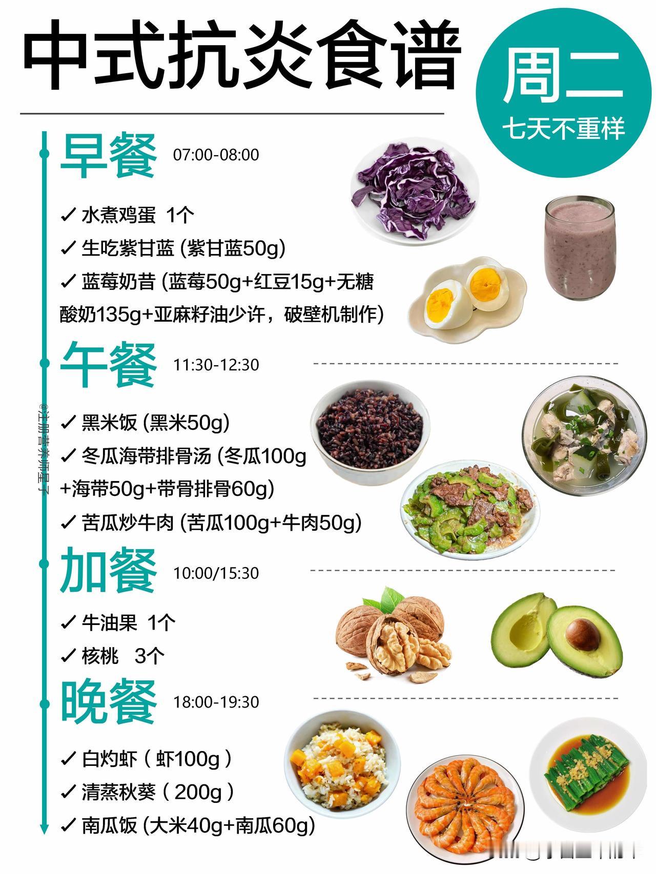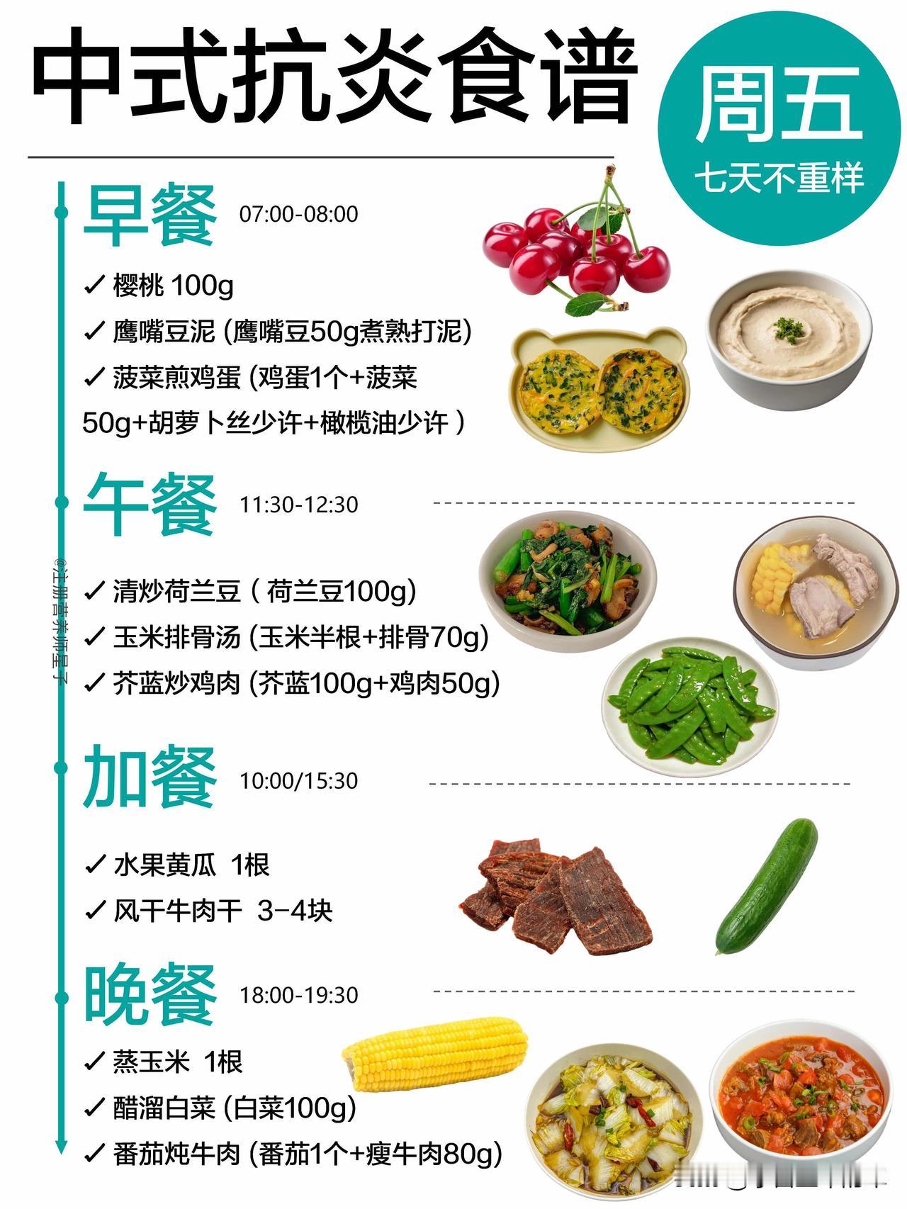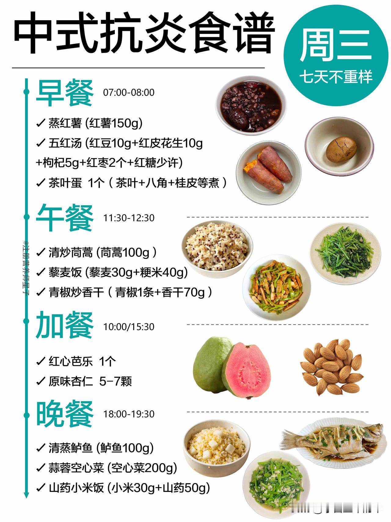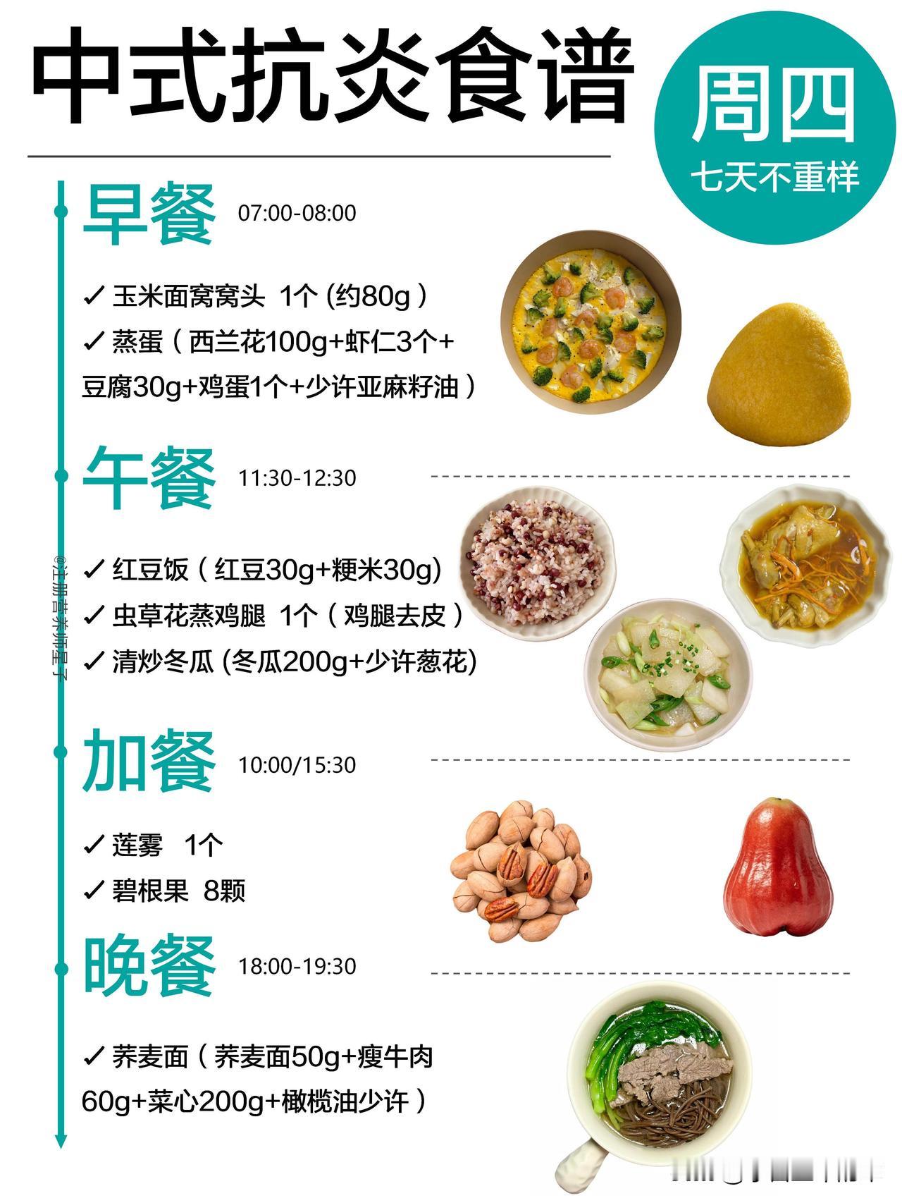 抗炎餐吃对了,皮肤和身体都在悄悄变轻松 谁懂啊,以前总觉得抗炎饮食就是吃沙拉、喝各种难喝的糊糊,直到我跟着这份中式抗炎食谱吃了一周,才发现原来不用啃草也能轻松抗炎。 这份一周不重样的食谱,完全贴合我们的饮食习惯,不用买一堆看不懂的进口食材,菜市场就能凑齐。周一的黄金抗炎奶昔,用姜黄粉和肉桂粉搭配香蕉燕麦奶,喝起来像温暖的香料奶茶,完全没有怪味;周三的五红汤搭配蒸红薯,连姨妈期都能暖乎乎的;周四的荞麦面搭配瘦牛肉,加班晚了吃也没负担。 它的核心就是多吃高纤维的全谷物、深绿色蔬菜和优质蛋白,用橄榄油、亚麻籽油这类健康油脂代替重油重盐,连加餐都安排了巴旦木、核桃这类抗炎坚果,再也不用靠奶茶和零食续命。 吃了一周下来,最明显的变化就是早上起来脸不肿了,之前因为炎症反复冒的小痘痘也消了大半,连下午犯困的情况都少了很多。不用极端节食,也不用追求“干净到苛刻”,好好吃饭,身体真的会给你正向反馈。