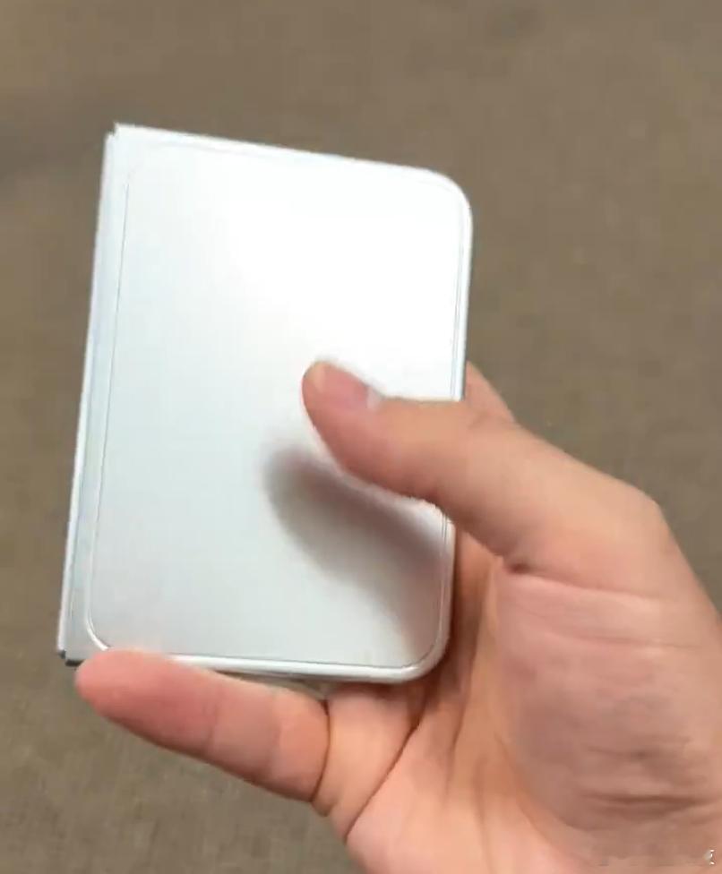 iPhoneUltra金属机模看样子尺寸介于手机和iPad mini之间,现在最好奇的是苹果第一代折叠屏铰链质感和折痕表现会怎样