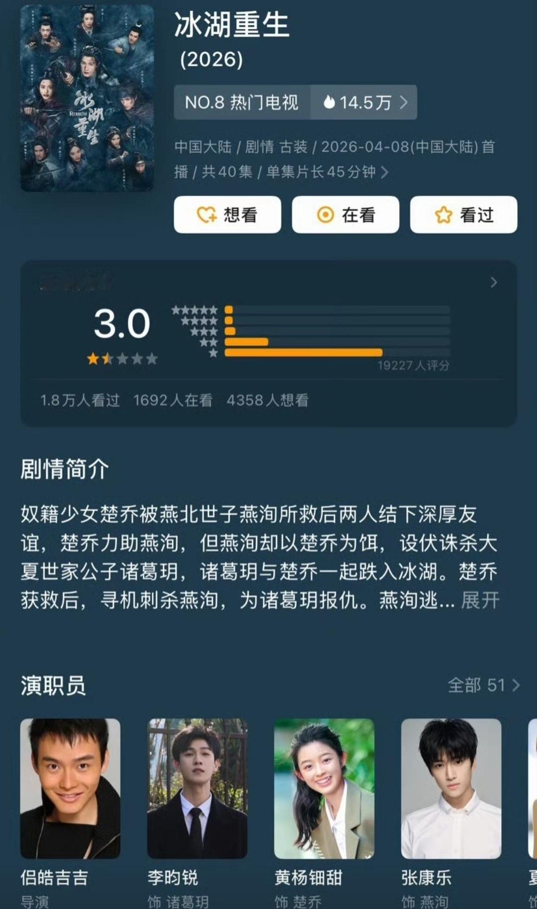 感觉这些日子一点热度都没有,哪怕是现在要超点了,好像连热搜都上不了。 知道这部剧怎么回事,剧里剧外,处处透露着冷淡。 我本来以为有黄杨钿甜,热度和话题都会高一些呢,最起码讨论度应该不差。 但是没想到会这样。