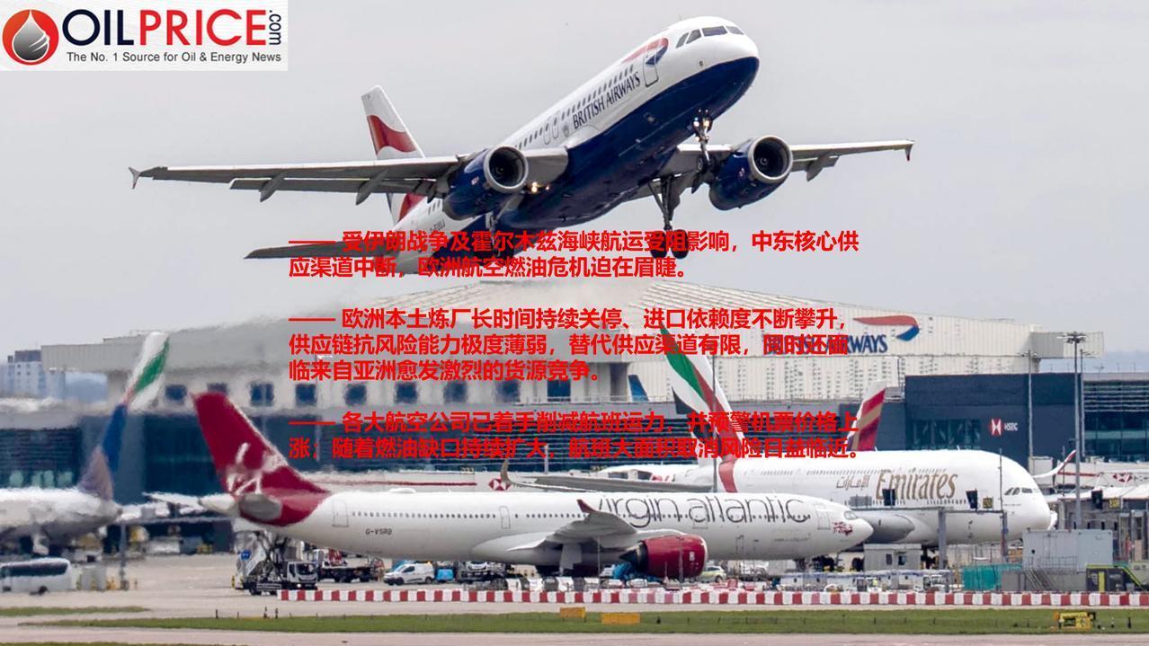 伊朗战事重创航空燃油供应, 欧洲今夏面临航空燃油危机 多年来,每逢夏季出行旺季,欧洲民航业总会频发地勤人员、机组人员临时罢工事件。而今年,相较于数周内即将到来的危机,各类罢工都只能算作小麻烦。这场航空燃油供应危机或将导致大量航班停飞、机票价格大幅上涨。 受伊朗战事影响,欧洲绝大部分航空燃油进口来源中断;与此同时,近二十年来欧洲本土炼油产能持续萎缩,大量炼油厂永久关停或转型生产生物燃料,本土航油产量不断下滑。 伊朗冲突叠加霍尔木兹海峡封锁,欧洲航空燃油供应遭受严重冲击,航空煤油价格每桶突破 200 美元。战前经由霍尔木兹海峡启运的最后一批中东航油货轮已全部到港,欧洲仅剩美国这唯一的替代供应来源。 美国货源不仅总量不足以弥补中东供应中断的缺口,欧洲还在货源争夺中面临来自亚洲愈发激烈的竞争。中东原油供应崩塌、亚洲炼厂削减开工负荷、多国为保障本土供应出台燃油出口管制,亚洲率先陷入供应紧张局面,开始争抢美国航空煤油货源。 欧洲燃料生产商协会数据显示,2009 年欧洲境内在运营炼油厂接近 100 座。自 2009 年至今,已有 28 座炼油厂关停或转型,数量占比超 25%,涉及炼油产能占欧洲总产能的 16%。 受本土燃油需求萎缩、减排政策收紧双重影响,欧洲炼油厂持续退出行业,对外进口依赖度持续走高。中东供应突发中断,再度暴露欧洲能源供应安全隐患。这是继 2022 年俄罗斯对欧天然气断供之后,短短四年内欧洲遭遇的第二次重大跨境能源供应危机。 多家分析机构与市场预测机构警示,此次航空燃油危机已近在咫尺。 国际能源署(IEA)数据显示,欧洲航空燃油消费量中,约三分之一依靠进口,且进口总量的75% 均来自中东。 国际能源署署长法提赫・比罗尔上周发出预警,欧洲现存可用航空燃油库存仅够支撑约六周。 比罗尔在接受美联社采访时表示:“倘若霍尔木兹海峡航运无法恢复…… 用不了多久,我们就会陆续收到各地航班因航空燃油短缺被迫取消的消息。” 能源航运数据机构沃泰克萨(Vortexa)市场分析师欧内斯特・桑西尔在周四发布的分析报告中指出,欧洲西北部是本次航油危机受冲击最为严重的区域。本月该区域航油进口量已低于常年均值,且未来几周供应缺口还将进一步扩大,原因是美国航油货源将更多转向亚洲市场,不再优先供应欧洲。 桑西尔表示:“4 月至今欧洲航空燃油进口量已下滑 15%,这充分体现了欧洲对中东货源的结构性依赖。欧洲西北部地区近半数航油进口,原本均需经由霍尔木兹海峡运输。” 该分析师补充道,从科威特阿卜杜拉港至荷兰鹿特丹港海运航程较短,仅约 21 天,供应中断带来的冲击会快速传导至欧洲区域进口市场。 美国已成为欧洲填补中东供应缺口的核心替代来源,但这一补给格局难以长期维持。当前美国航空煤油出口正持续转向亚太地区,本月对亚太出口量创下七年新高,亚太地区货源占美国航油总出口比重已超 30%。 桑西尔指出:“此次货源流向调整,反映出美国成品油出口整体重心正向亚太市场转移。” 多重因素叠加之下,欧洲在全球航空燃油市场波动中处于极高风险敞口。 欧洲最大航空公司汉莎航空于上周四表示,鉴于航空煤油价格较伊朗战争爆发前涨幅已超一倍,叠加劳资纠纷带来的额外成本压力持续攀升,公司将加快推进运力缩减计划,并提前退役部分飞机。 汉莎航空集团首席财务官蒂尔・施特赖歇特表示:“面对航空煤油成本大幅飙升与地缘政治动荡,这套机队与运力调整提速方案势在必行。”