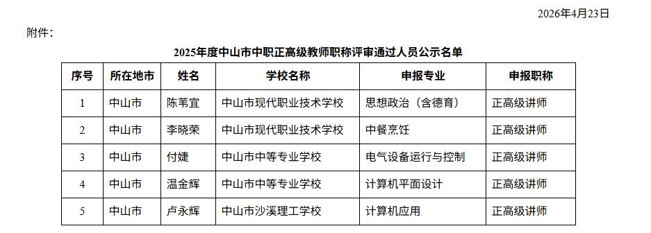 2025年度中山市中职正高级教师职称评审通过人员公示!共5名优秀教师获得拟通过,名单如下有你们认识的吗? 正高级职称评审教科研要求:独立 / 第一作者,公开发表本专业论文3 篇,至少 1 篇为近 3 年发表(无核心强制要求)。 分享职称期刊,了解发表可以一起交流