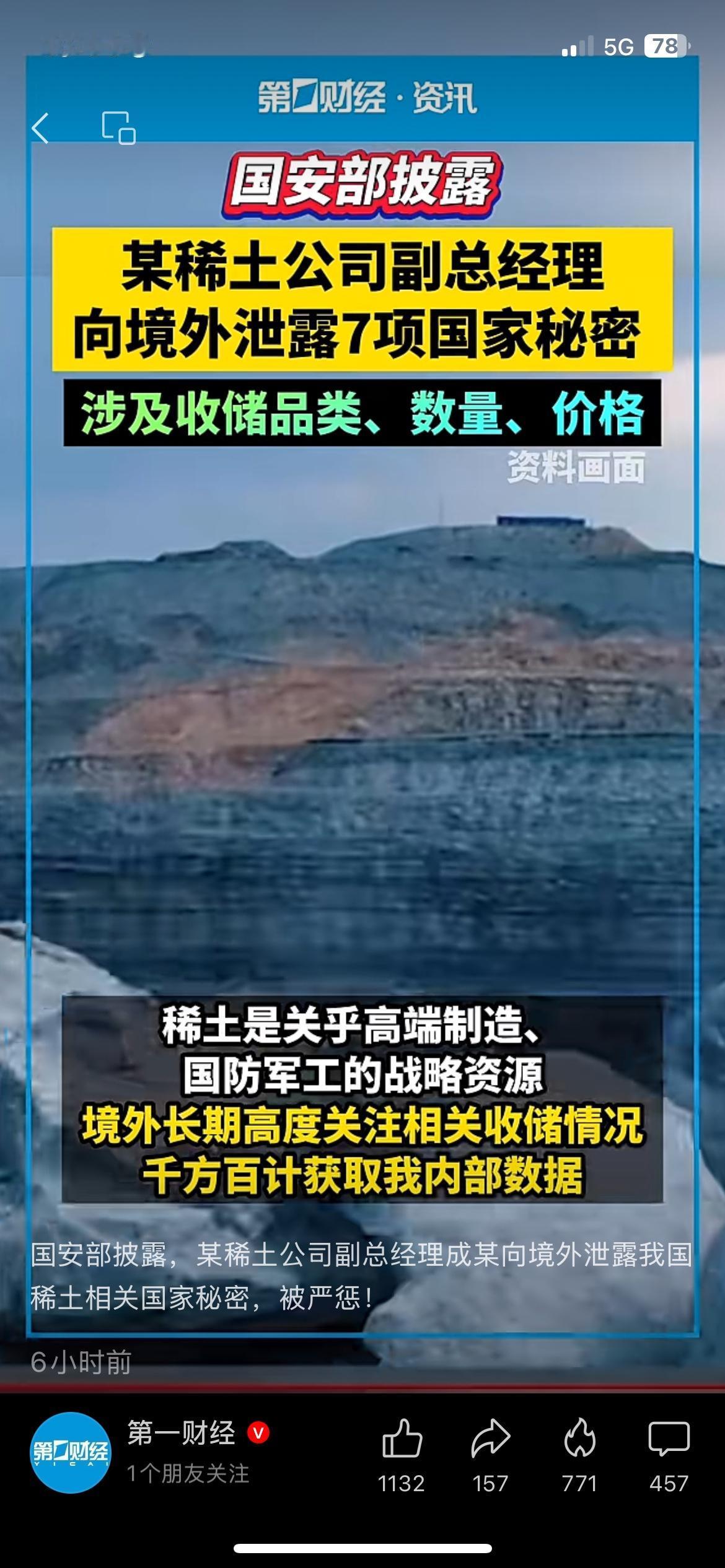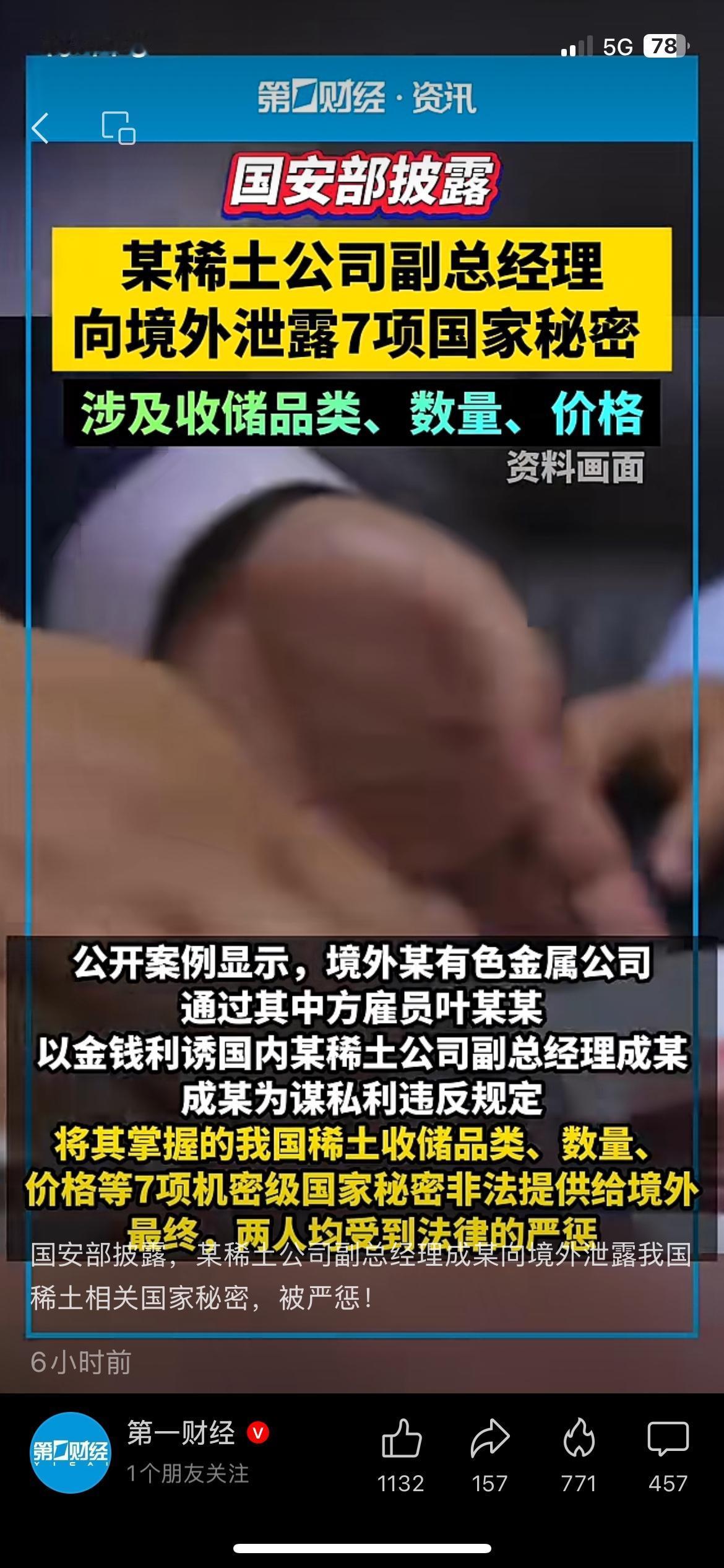 稀土高管向境外泄密7项国家秘密,国家安全警钟敲响 最近国安部披露的这件事,看得人后背发凉。 某稀土公司副总经理成某,把稀土收储品类、数量、价格等7项国家秘密,直接泄露给境外势力。 稀土是咱们的战略资源,关系军工、高端制造命脉,这种行为直接危害产业链安全。 现在国家对涉密领域监管越来越严,也提醒所有企业,保密红线碰不得。 你觉得这类泄密事件,该从重从严处理吗? 国家安全 稀土