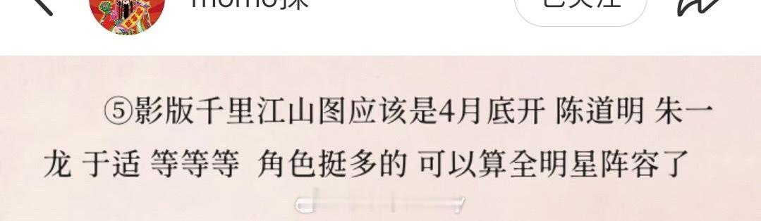 影版千里江山图🍉4月底开,陈道明 朱一龙 于适 张子枫