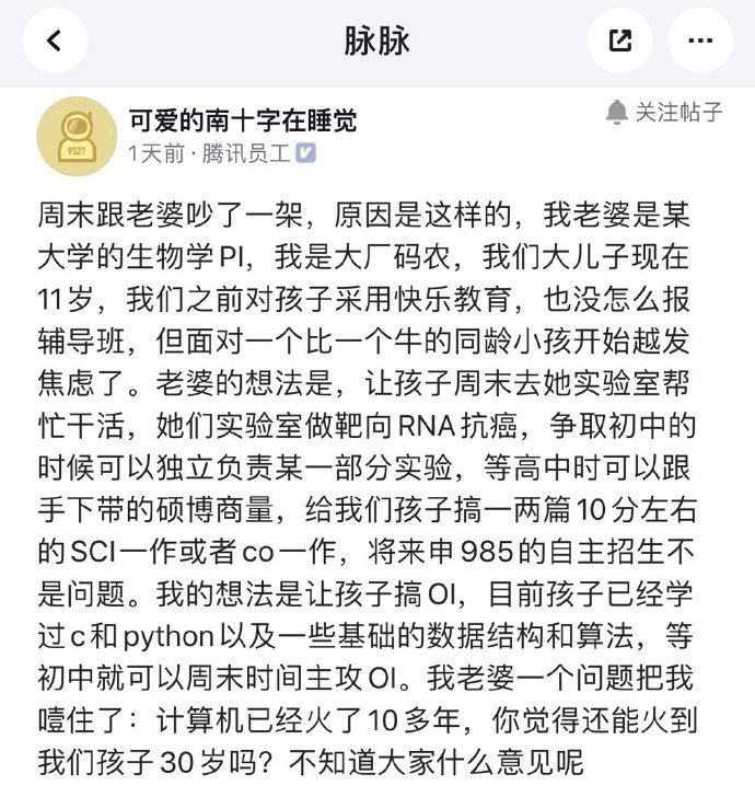 当“计算机火了10多年”的质疑撞上“快乐教育”的迷茫,这场关于孩子未来的“路线之争”,到底该怎么选?家人们,求支招!