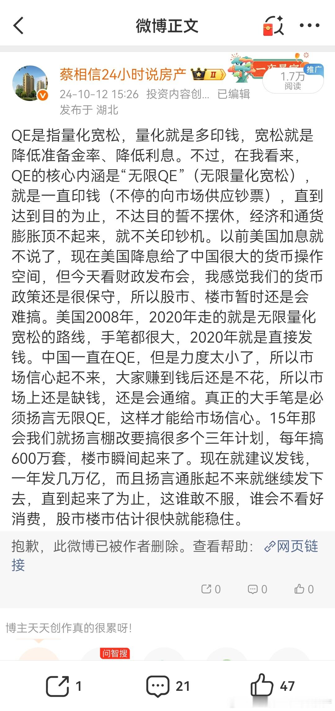 2015年中国的棚改,2020年美国疯狂的QE,都是大手笔,能让市场迅速复苏。 现在有这种政策吗?没有的话,我觉得难谈上涨啊