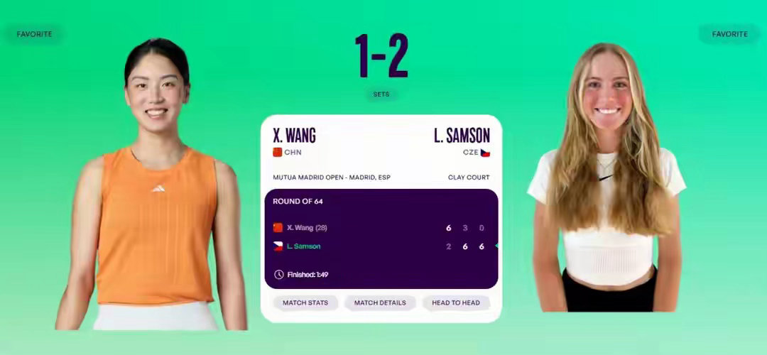 04月23日讯 WTA1000马德里站单打第二轮,赛会28号种子王欣瑜1-2遭18岁捷克外卡小将萨姆森逆转,无缘32强赛。各盘比分分别是:6-2、3-6、0-6。萨姆森职业生涯第二次击败TOP50球员,晋级32强将战邦达尔。