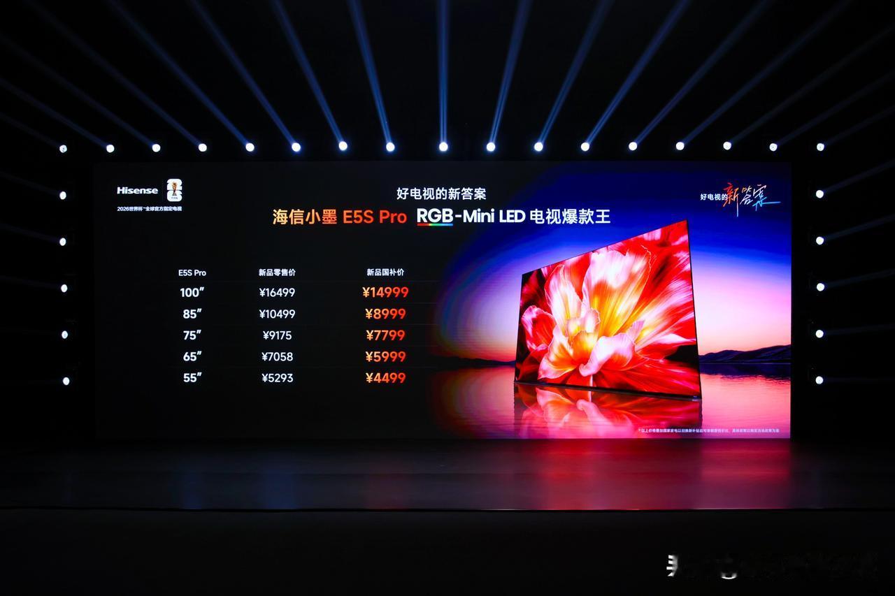 哇塞!海信正式发布小墨E5S Pro,这款RGB-Mini LED电视爆款王简直太惊艳了。 它采用的RGB-Mini LED显示技术,直接输出三原色,色彩纯度高,还能降低有害蓝光,功耗降低30%,无镉零污染,真正做到了色彩、护眼与节能的完美平衡。 画质方面,至高4680玲珑控色分区搭配XDR Pro 3000nits亮度,让画面细节清晰可见。信芯光色同控AI画质芯片以108bits精度智能调控,AI自然光晕消融、AI真彩峰值亮度等技术,让色彩更加鲜艳亮丽,低清片源也能秒变接近4K画质。 屏幕采用墨晶屏2.0,抗反光且画面通透。原生4K 180Hz疾速刷新,游戏体验流畅。2.1.2声道影院级音响系统,带来沉浸式音效。53mm超薄机身适配各种家装风格。有源智能天线Wi-Fi 6让网络稳定无忧。标配全新超级小聚AIOS智慧大脑,交互更贴心。选海信小墨E5S Pro,开启视听盛宴!