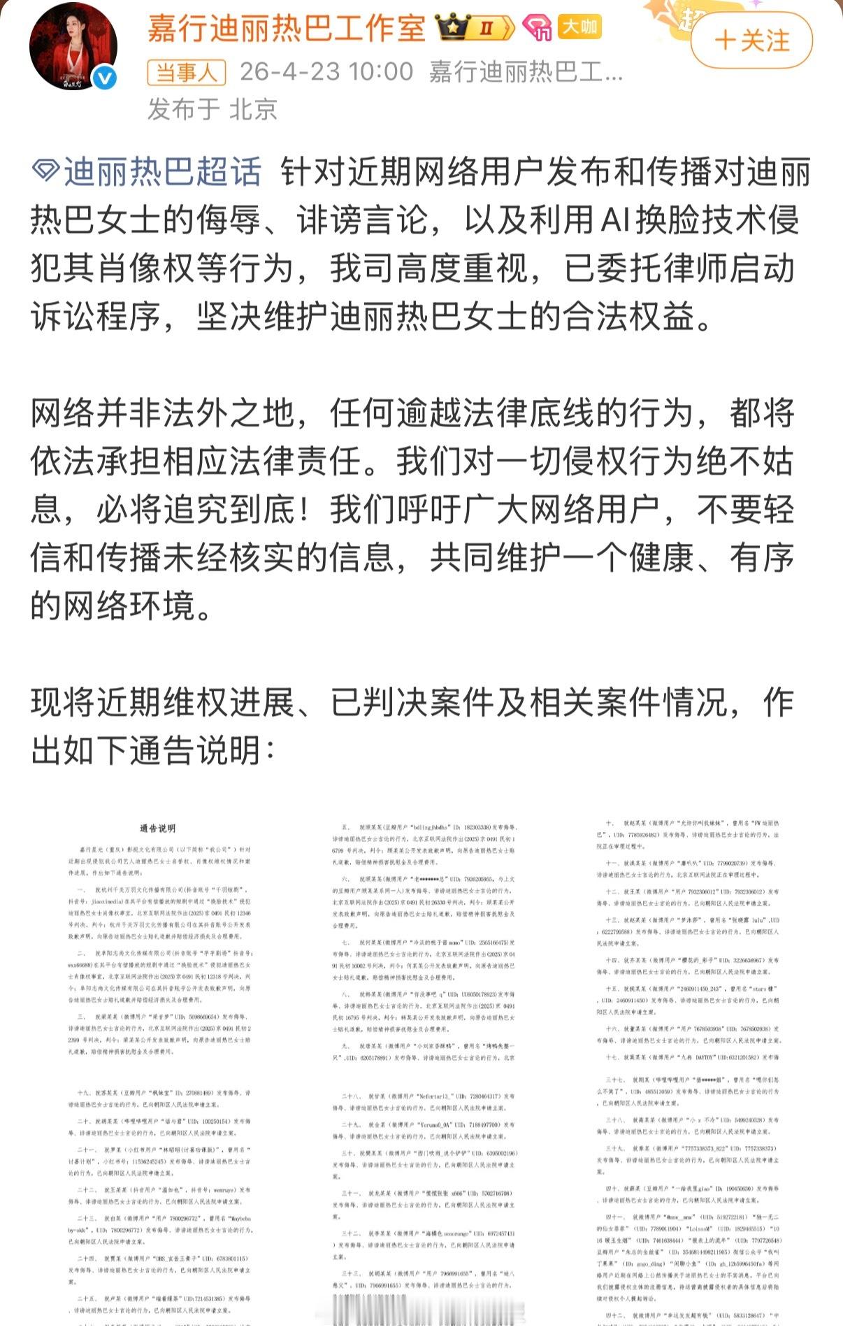 上午迪丽热巴方公布告黑维权进展后,杨紫工作室也公布了告黑名单!