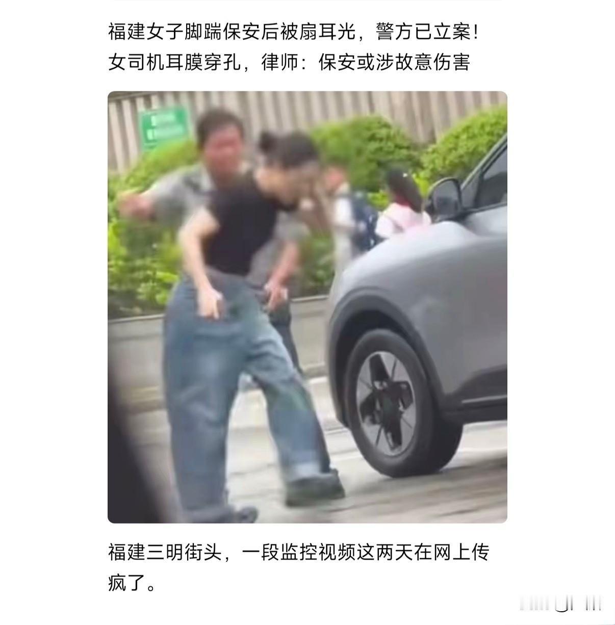 保安掌掴接娃女司机,完整视频还原真相,这下麻烦大了!随着完整视频曝光,事件前因后果彻底清晰,动手的保安也迎来了严重后果。事发之初,女司机正常到校接人,保安先开始刁难,不仅无故言语辱骂、恶意敲击车窗挑衅,在女司机准备下车理论时,还强行拽拉车门,用车门狠狠撞击她的腿部。接连遭受辱骂与身体伤害,女司机情绪失控,下车踹了保安一脚,可保安竟直接发力,狠狠一巴掌扇在她脸上,巴掌力道极重,声响刺耳,全然是全力施暴。 此前,掐头去尾的片段流传网络,不少网友被误导,误以为是女司机胡搅蛮缠。可完整视频清清楚楚证明,从骂人、敲窗到撞人,全程都是保安先动口、先动手,所有过错均在保安一方。 经医院检查,这记重拳导致女司机耳膜穿孔,伤势严重,即便后续治愈,也大概率会留下终身后遗症,身体与心理都遭受了巨大伤害。 如今,这名暴躁保安自食恶果:工作直接不保,还要承担全部医疗赔偿,若双方协商无果,伤情达到轻伤标准,他还将面临刑事处罚,彻底为自己的冲动买单。