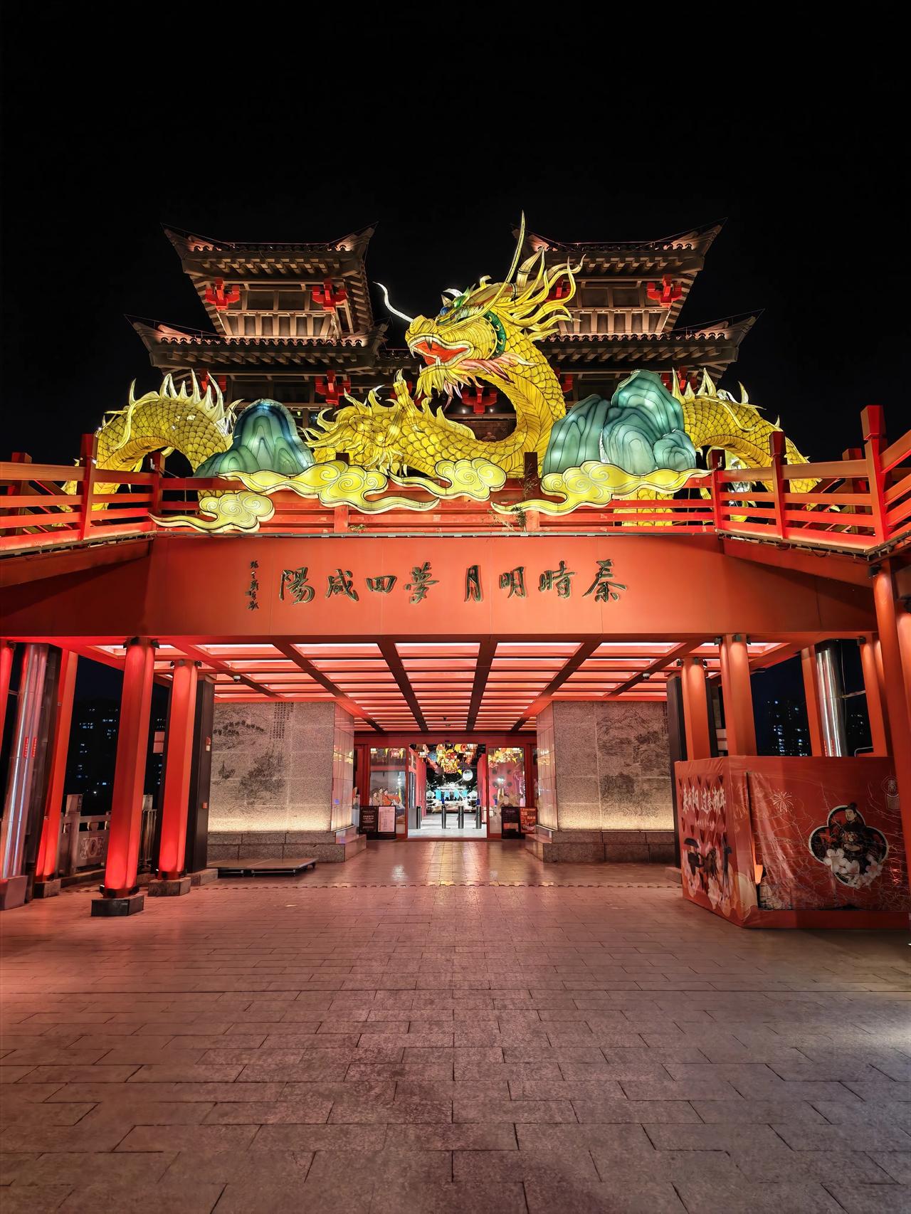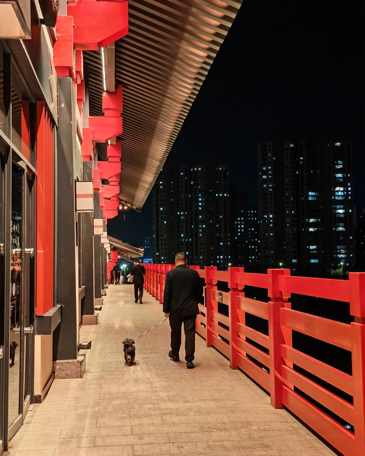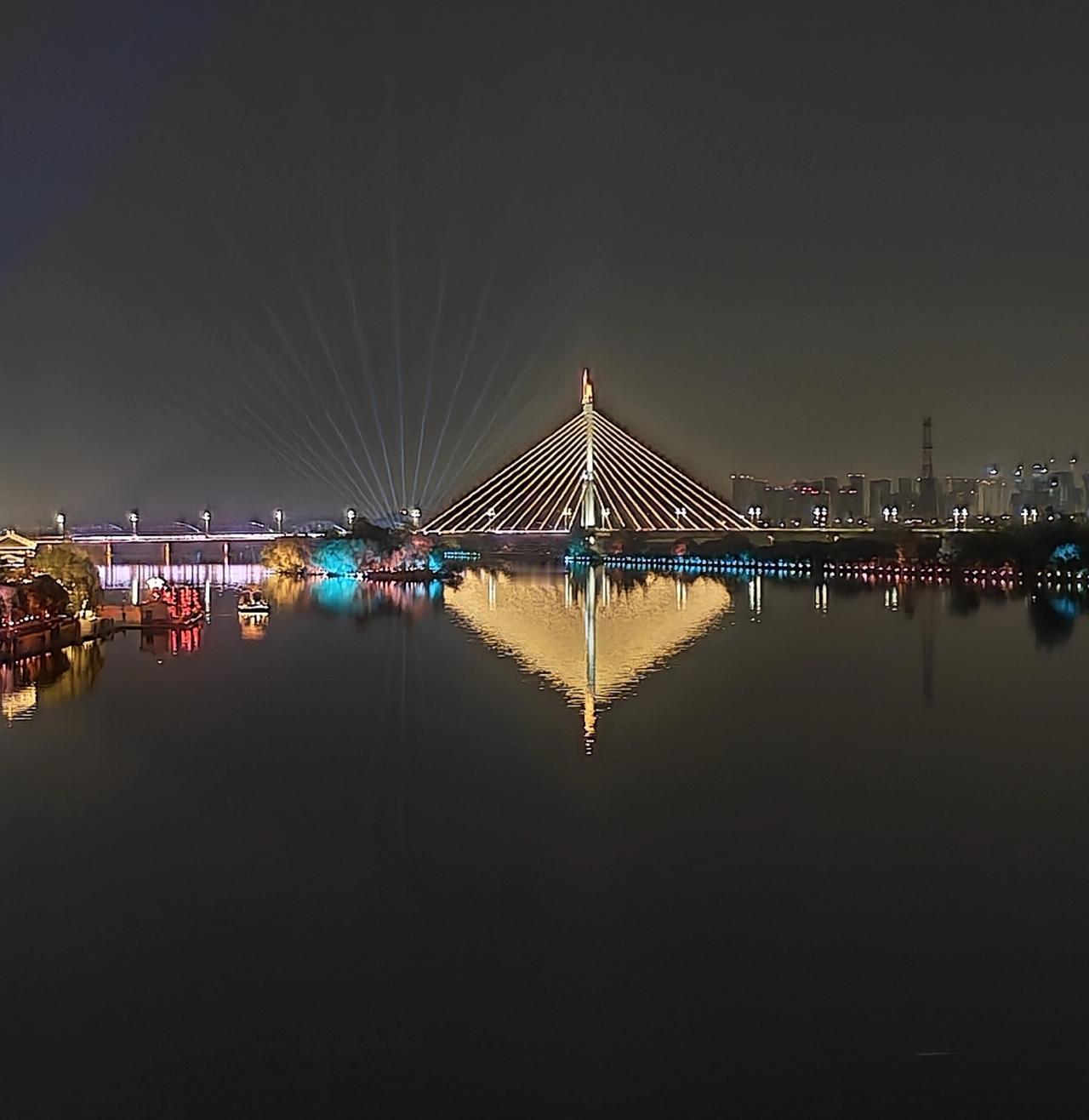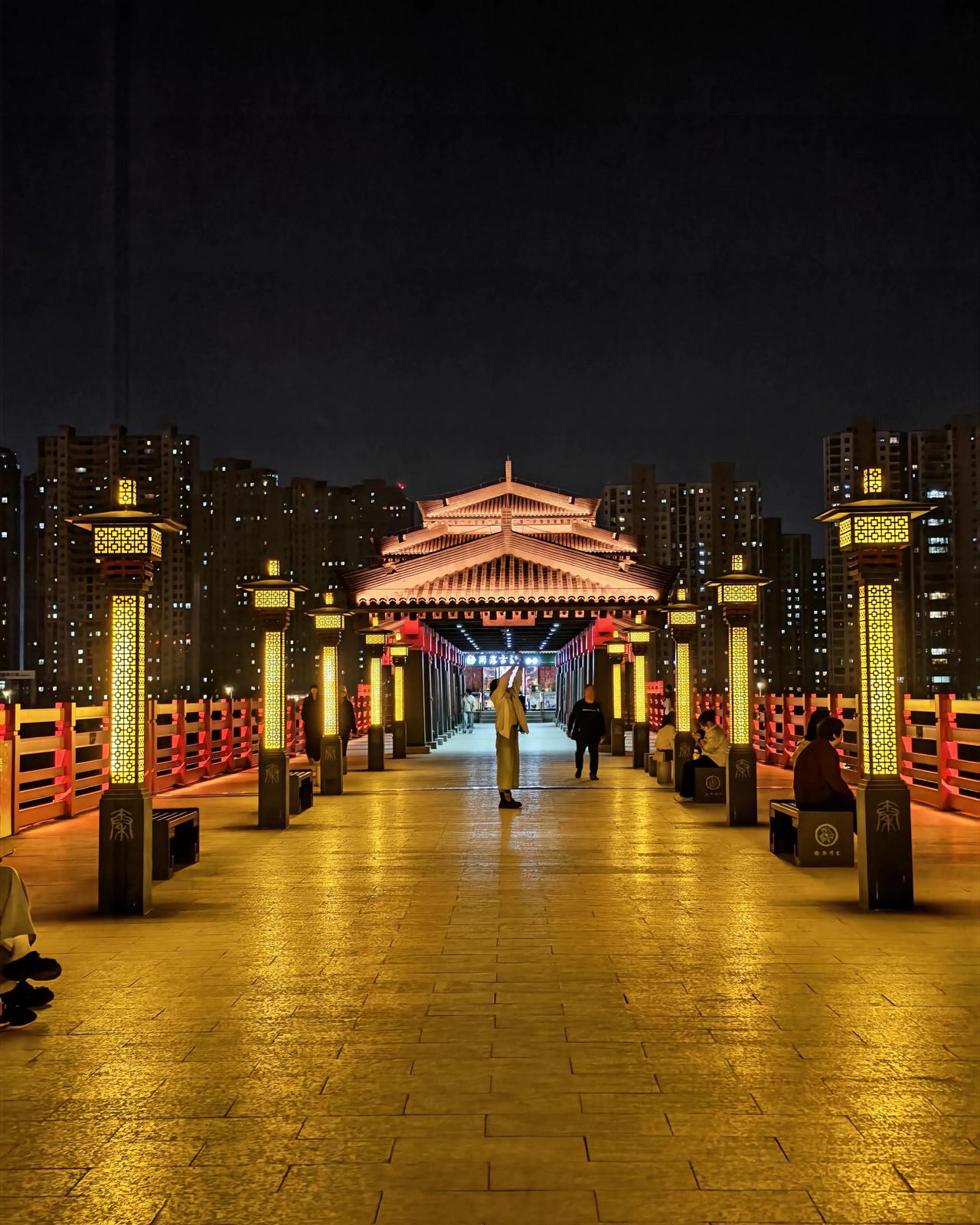 2026.4.23 星期四 昨晚在宝鸡看石鼓廊桥,今晚已漫步在咸阳古渡廊桥。两市廊桥都分别是两市的地标性建筑,都连接着商业区,连接着古文化,她们各有特色,但咸阳古渡廊桥更大气,更显雄壮。 咸阳古渡廊桥是全国首座秦建筑风格双层人行景观廊桥,名字源自关中八景之一的“咸阳古渡”。廊桥两端矗立象征秦定都咸阳的“冀阙”门,整体以朱红为主色调,融合廊、亭、坊等秦代建筑元素,尽显秦风古韵。桥面分上下两层:一层为市民徒步通行区,青石板铺路,北端设有20尊秦代历史人物青铜雕塑;二层是休闲观景平台,建有主阁“秦风阁”、副阁“天籁阁”“润心阁”,配套音乐厅、画廊、书吧等文化设施,可俯瞰渭河风光、远眺咸阳城景。 它与清渭楼、咸阳古渡遗址博物馆、渭河古渡遗址联动,构成咸阳古渡文化景观带,既是市民休闲步道,也是感受秦汉历史、观赏渭河夜景的热门打卡地。