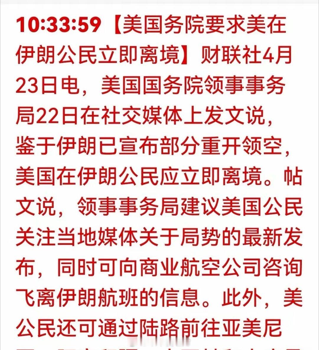 A股。今天中午11点,大盘突然加速跳水,原来外围有利空了,这老美一句话,大A就得吓尿。老美突然要求所有在伊的,美国公民,立即撤离。不排除对伊随时动手。