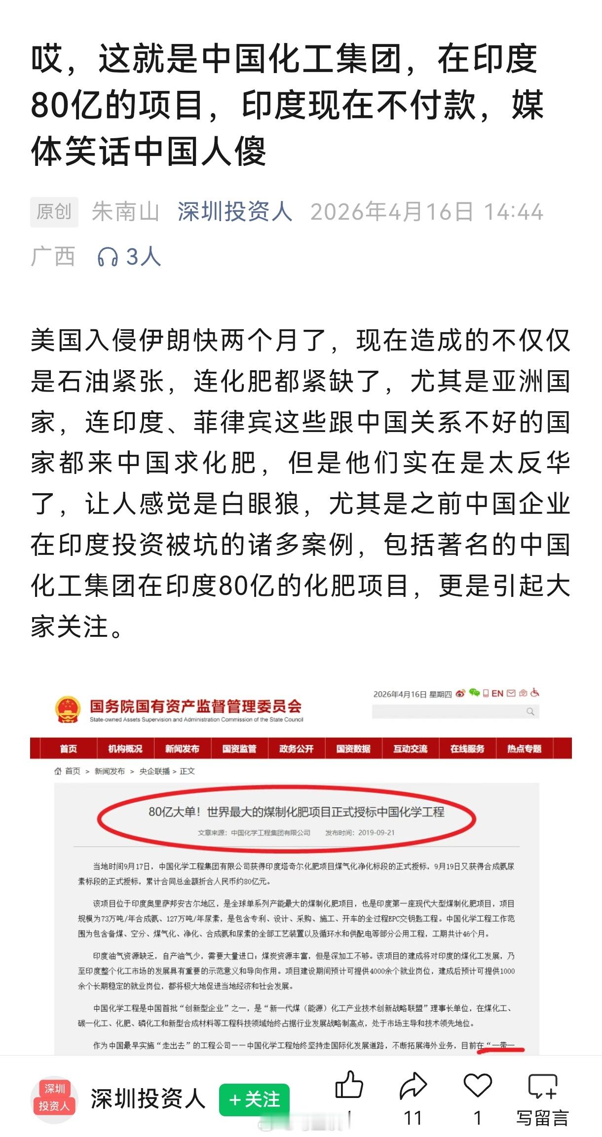 印度大举进口250万吨尿素 “印度化肥短缺加剧,中企承建塔奇尔化肥项目因欠款停滞”…中国公司差点帮印度解决了化肥困境,可惜印度想白嫖,项目停了…印度农业大国,但化肥受制于人,近期更以每吨935-959美元的天价紧急采购250万吨尿素,这一价格是2个月前价格的两倍!接下来会不会有中国公司想要送温暖?