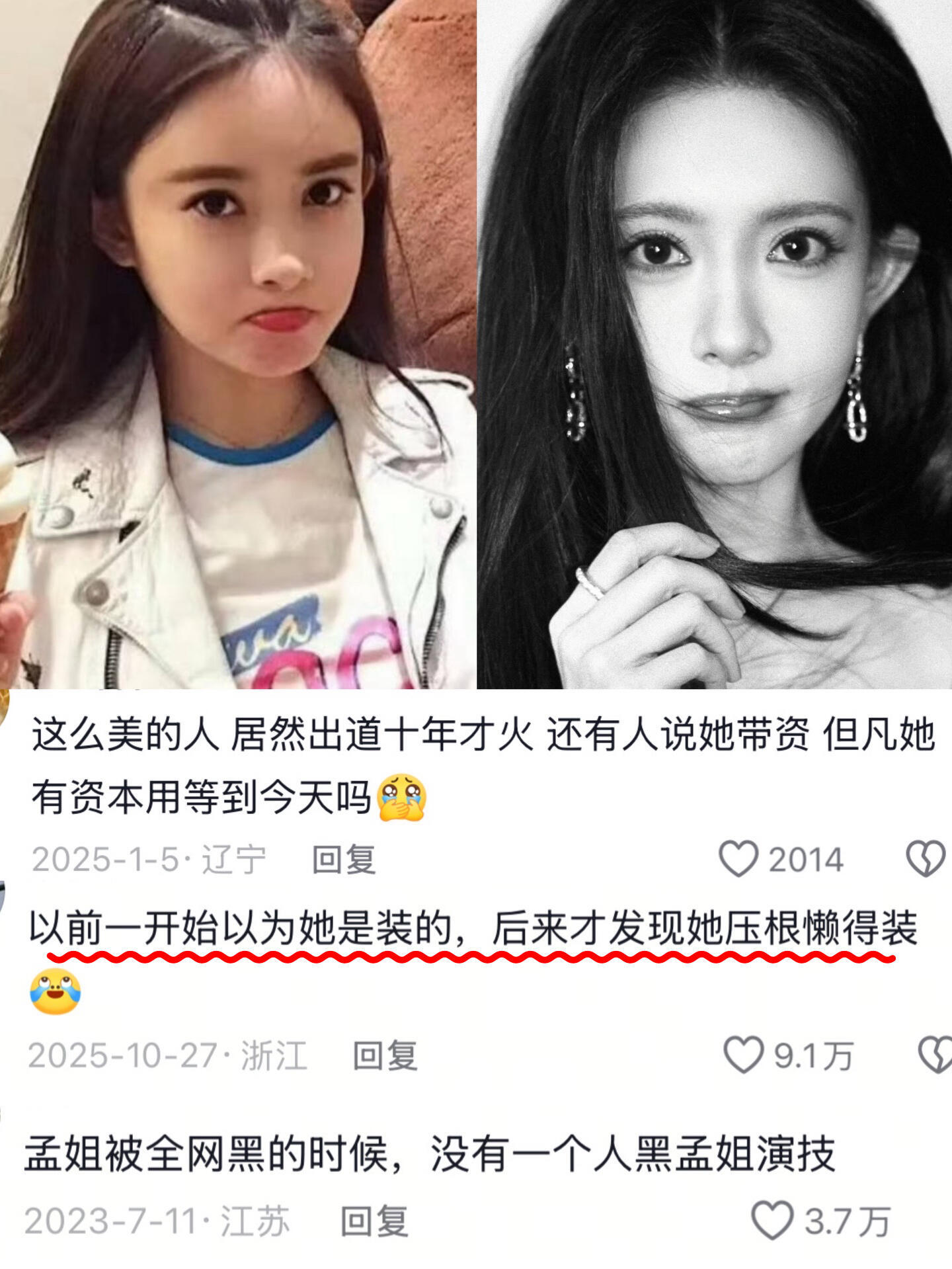 总算看清了孟子义的真面目真的越考古孟子义越上头,才发现她能从全网嘲到人人喊孟姐,根本不是运气,是她自带的无痛感体质,在内🐟真的独一份。