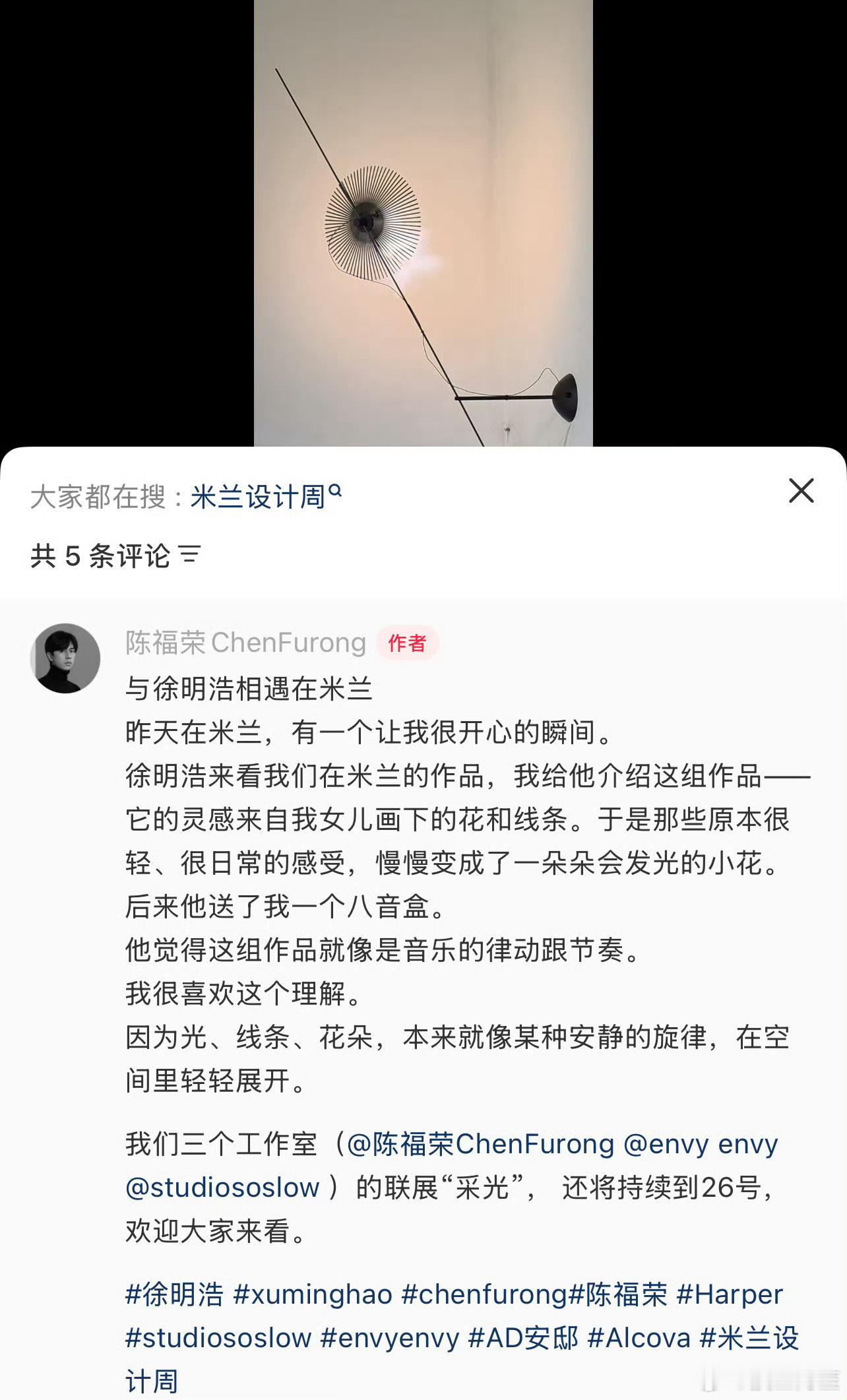 AD官方认证徐明浩:首位米兰设计周艺人。The 8 xi真的是Artist气质很浓郁的艺人,这也是会被邀请参加设计周的重要原因吧,期待新作品啦徐明浩首位米兰设计周艺人