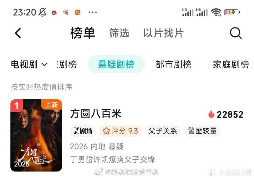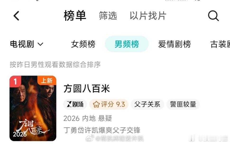 许凯《方圆八百米》在完全没有宣传的情况播出的真的很不错了,各个榜单都是第一,许凯