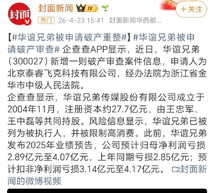 我去 华谊兄弟申请破产了,曾经内娱电影市场半边天