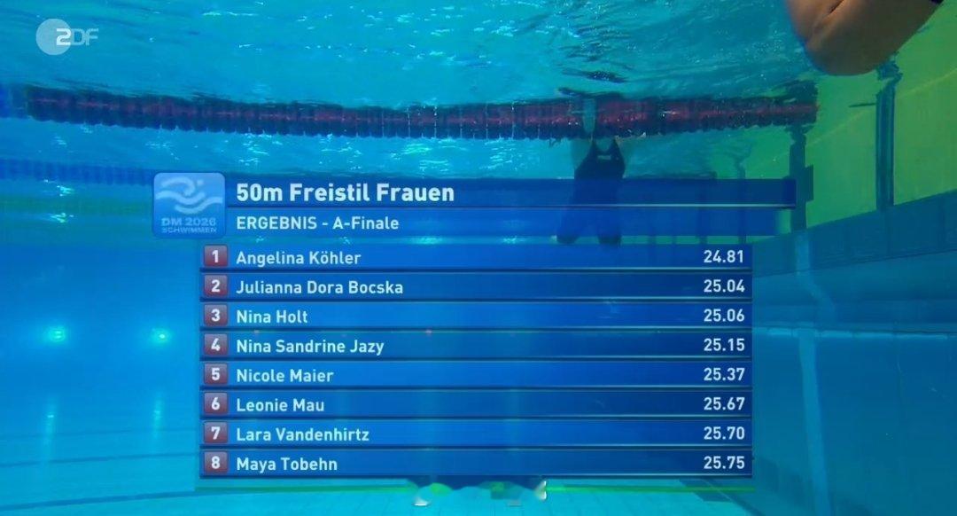 德国游泳锦标赛 女50自决赛Angelina Kohler 24.81