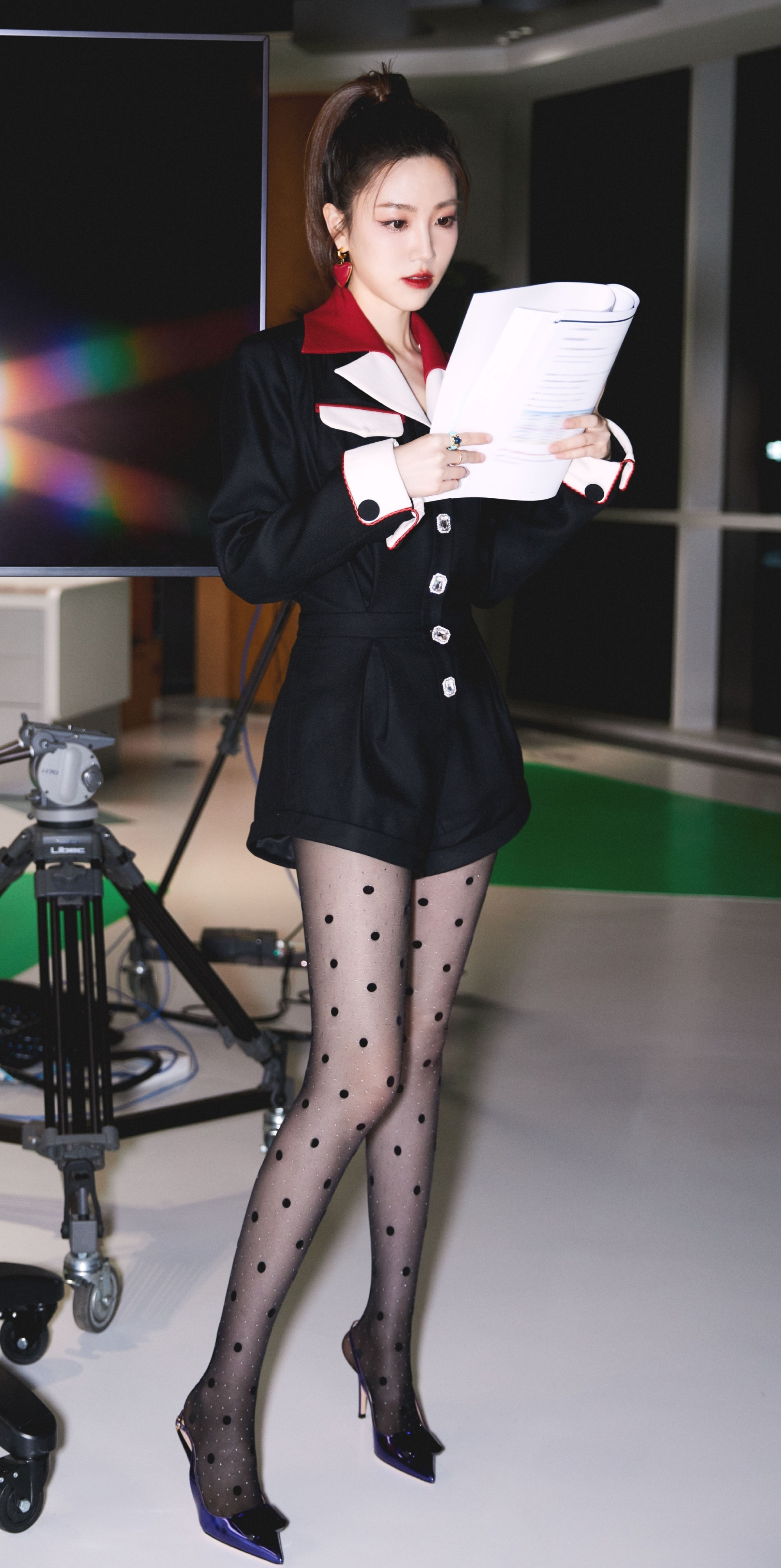 张纯烨,斑点黑色丝袜穿秀出大长腿,妥妥的内娱”腿精“。张纯烨