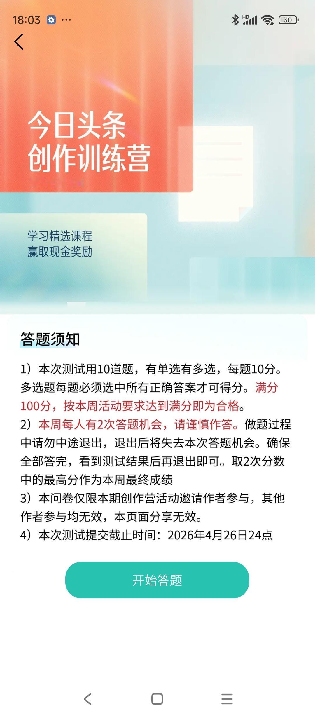 头条训练营:学习正当时 今日,头条小秘书邀我参与头条训练营答题学习。在这里,我收获满满,不仅学到创作知识,更清楚哪些题目、内容会违规。我深刻领悟到,要当正能量传播者,坚守底线,用所学知识创作优质内容。