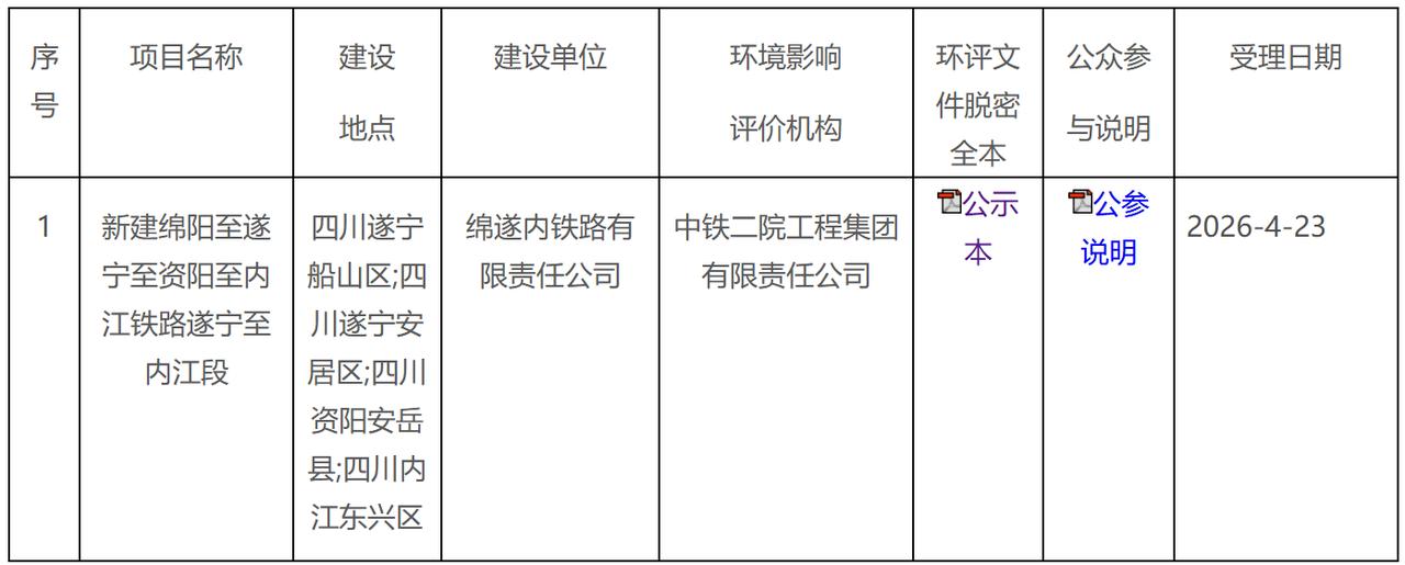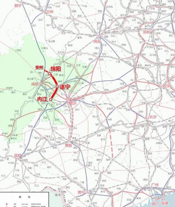 2026年4月23日,四川省生态环境厅正式发布《新建绵阳至遂宁至资阳至内江铁路遂宁至内江段》环评文件公告,这条总投资约208.83亿元的城际高铁大动脉,正式迈入环评审批关键阶段,为2026年内开工建设筑牢了核心基础,也让川中地区南北向高铁通道的全线贯通迎来了里程碑式节点。 作为绵遂内铁路的核心组成部分,遂宁至内江段不仅跻身国家《中长期铁路网规划》,更是《成渝地区双城经济圈多层次轨道交通规划》的重点落地项目 。整条绵遂内铁路正线全长287.9公里,是串联川北、川中与川南的纵向交通主轴,目前绵阳至遂宁段已于2024年全线开工建设,该段新建正线约136公里,设计时速250公里,总投资约303.3亿元,计划2028年建成通车。随着绵遂段建设稳步推进,遂宁至内江段的前期工作也全面提速,项目可研报告已于2026年1月正式获得四川省发改委批复,此次环评公示,更是让项目年内开工的目标进入了最终倒计时。 根据官方批复信息,遂宁至内江段线路起于在建的遂宁高新站,向南途经遂宁安居区、资阳安岳县,终至内江北站,新建正线全长107.797公里,全线采用双线城际铁路标准,设计时速250公里,项目总投资约208.83亿元。该项目已明确列入四川省2026年重大项目新开工清单,计划建设工期4年,预计2030年建成通车。工程建设方面,项目桥隧占比高达72.35%,全线正线规划建设桥梁128座、隧道18座,其中最长桥梁为跨柠都大道双线特大桥,全长约3177米,最长隧道为团结2号隧道,全长约2183米。全线共设4座车站、3座线路所,涵盖遂宁高新站(2台6线)、安居站(2台4线)、安岳站(2台4线)及既有内江北站(6台13线),同时还将对内江北站实施改扩建,新增站房建筑面积8000平方米,同步建设内江至遂宁左右联络线、内江北动走线等配套工程。在运输能力规划上,项目初期(2035年)、中期(2040年)、远期(2050年)计划开行列车总数分别为42对/日、50对/日、64对/日,城际列车占比突出,精准匹配其区域性城际铁路的功能定位。 作为完全由地方出资建设的城际铁路项目,遂宁至内江段的资金保障方案已全面落地。项目资本金占总投资的50%,规模约104.42亿元,其中遂宁、资阳、内江三市分别出资13.94亿元、24.72亿元、14.34亿元,负责辖区内征地拆迁工作及部分工程建设费用,剩余约51.42亿元资本金由蜀道集团统筹出资,政企协同的出资模式,为项目全周期顺利推进提供了坚实支撑。 这条铁路的建设,将深刻改写四川乃至成渝地区的铁路网格局。项目建成后,将成为四川境内一条核心的“绕蓉”高铁通道,有效缓解成都铁路枢纽日益增长的通行压力。当前成都枢纽已汇聚西成高铁、成渝客专、成宜高铁等多条干线,未来还将承接成渝中线、成达万高铁、川藏铁路的枢纽衔接功能,绵遂内铁路的落地,将为区域路网分流提供关键支撑,让川中、川南地区的南北向通行无需再绕行成都。同时,这条线路不仅是川南地区北上的核心通道,更将成为云南北上京津冀、华南地区直通西北的重要辅助通道,全面补齐川中腹地南北向高铁网络的空白。 线路贯通后,遂宁至内江的通勤时间将从2小时压缩至半小时,绵阳至内江实现1小时通达,沿线近千万人口将迈入高效便捷的高铁通勤圈。这条交通动脉更能串联起绵阳科技城、遂宁观音故里、安岳石刻、内江糖业文化等特色资源,形成一条联动文旅融合、产业升级、乡村振兴的黄金经济走廊,为沿线城市协同发展注入全新动能。 更值得期待的是,绵遂内铁路还规划向北延伸,通过绵阳至安州铁路接入川青铁路,叠加已纳入规划的渝遂城际铁路,未来不仅将打造成渝地区第四条高铁主轴,更将形成重庆直通西北的高铁大动脉,进一步强化成渝地区作为国家关键战略腹地的核心地位,为成渝地区双城经济圈高质量发展筑牢坚实的轨道根基。