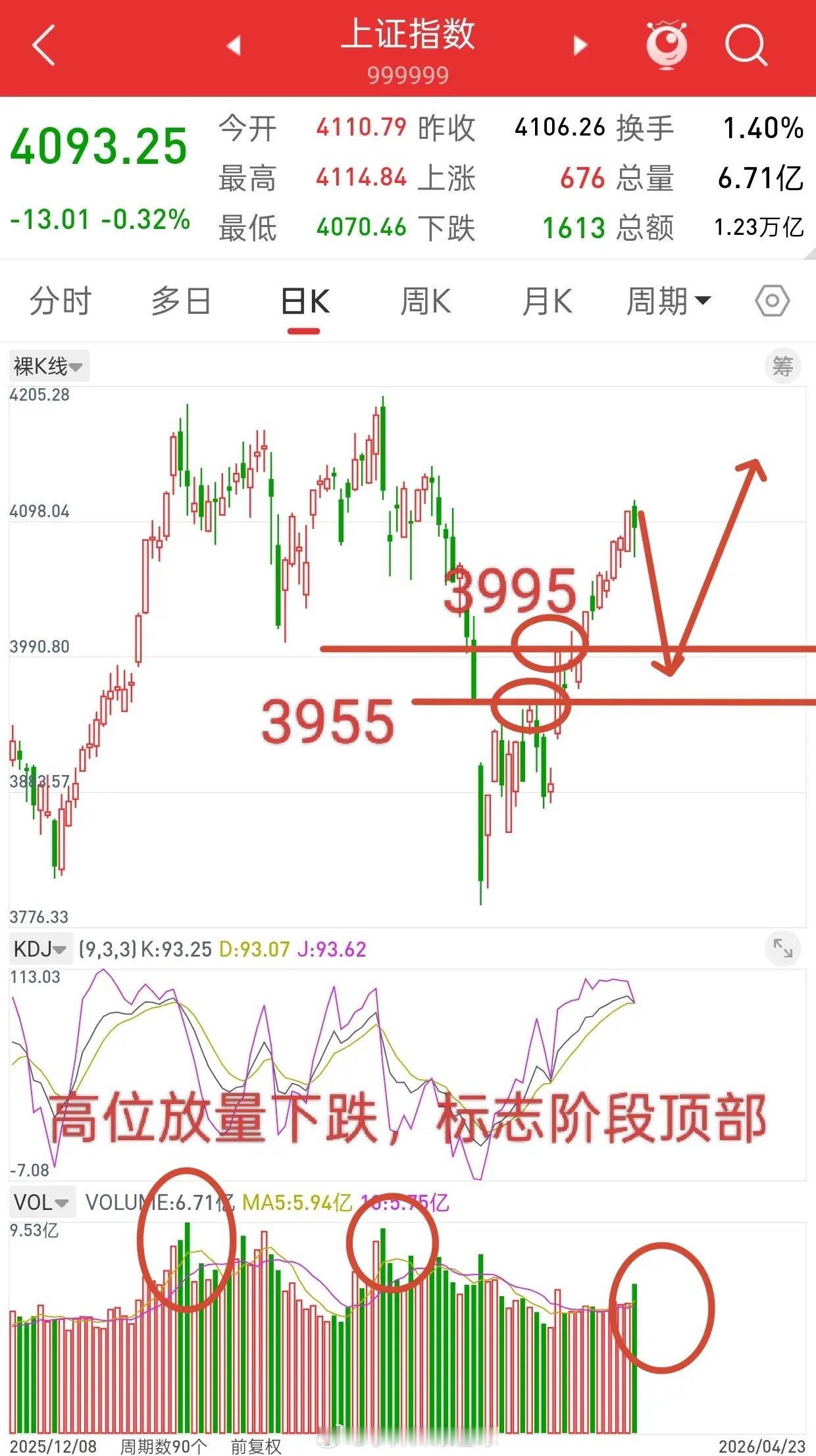 观点和昨晚一致,昨天高位放量,标志着阶段性顶部区域,所以接下来继续看回调,就如前天说的一样,四大指数均有回调需求。