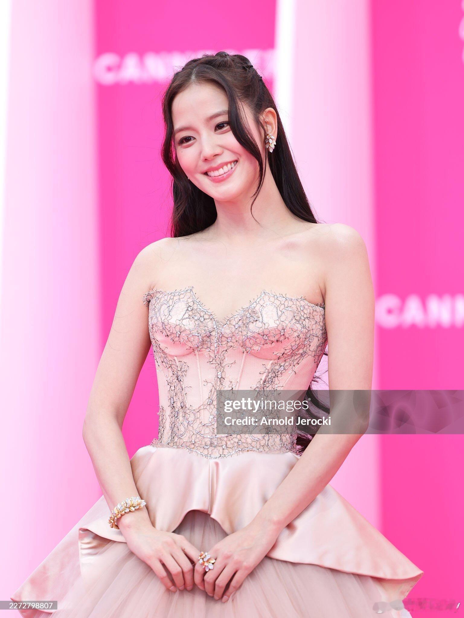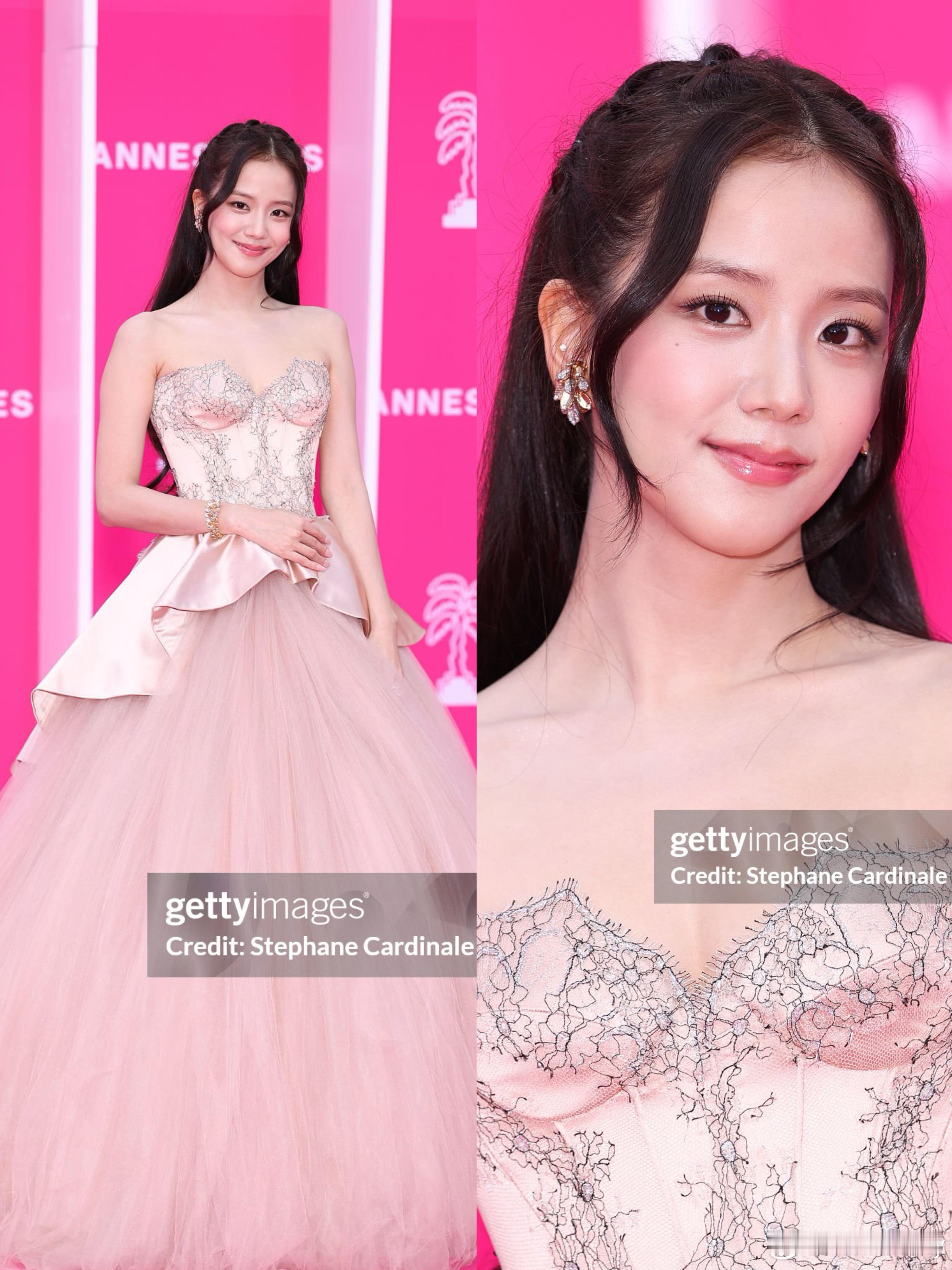 Jisoo戛纳电视剧节G社生图,Jisoo 一身Miss Sohee高定蓬蓬裙,搭配Cartier高珠,温柔又贵气。怼脸镜头下皮肤细腻、状态能打,是从画里走出来的优雅公主!