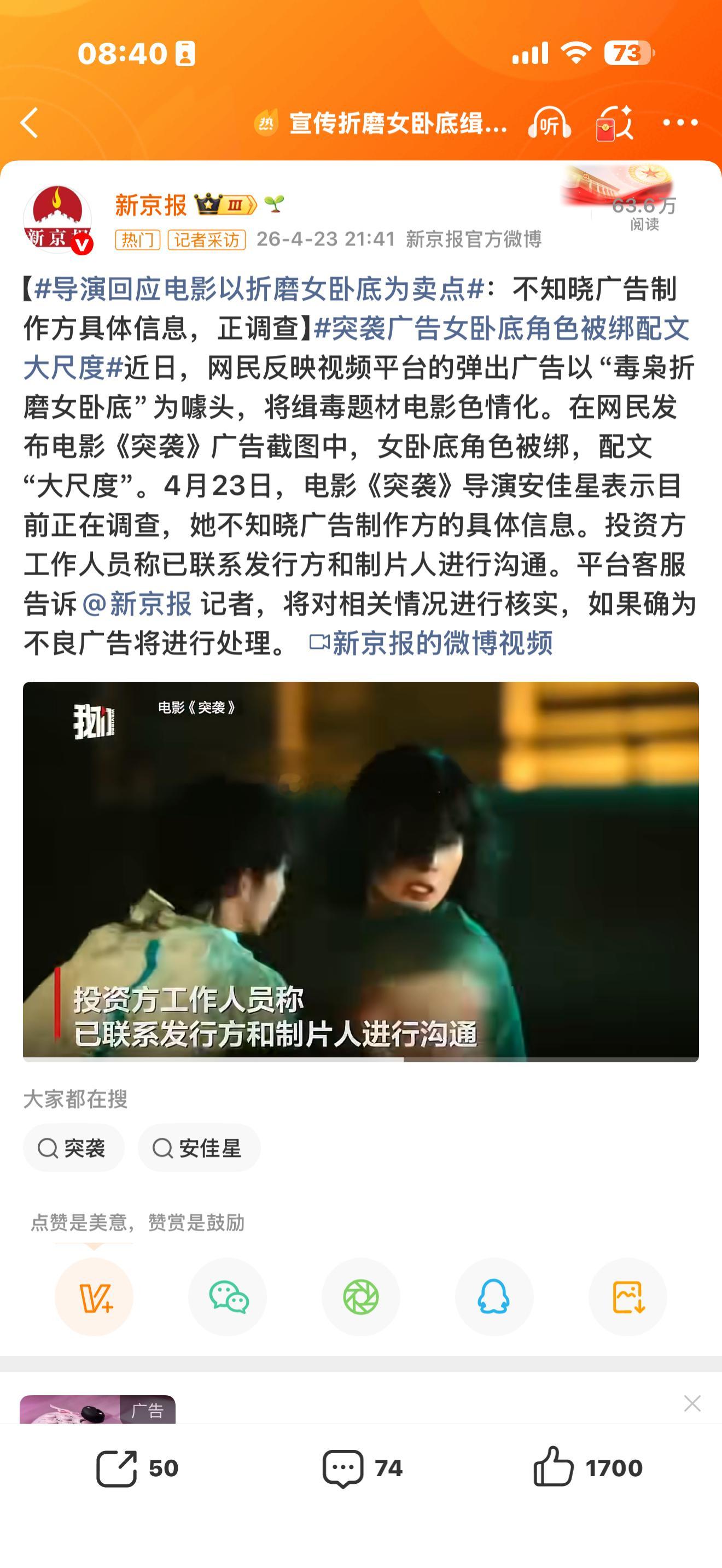 导演回应电影以折磨女卧底为卖点简单翻译:导演想要歌颂大女主,在这个行业付出代价。但另外的大女主不买单。按照那一部分大女主的思考方式:高光必须是大女主的,又飒又高光。至于被折磨,那就。