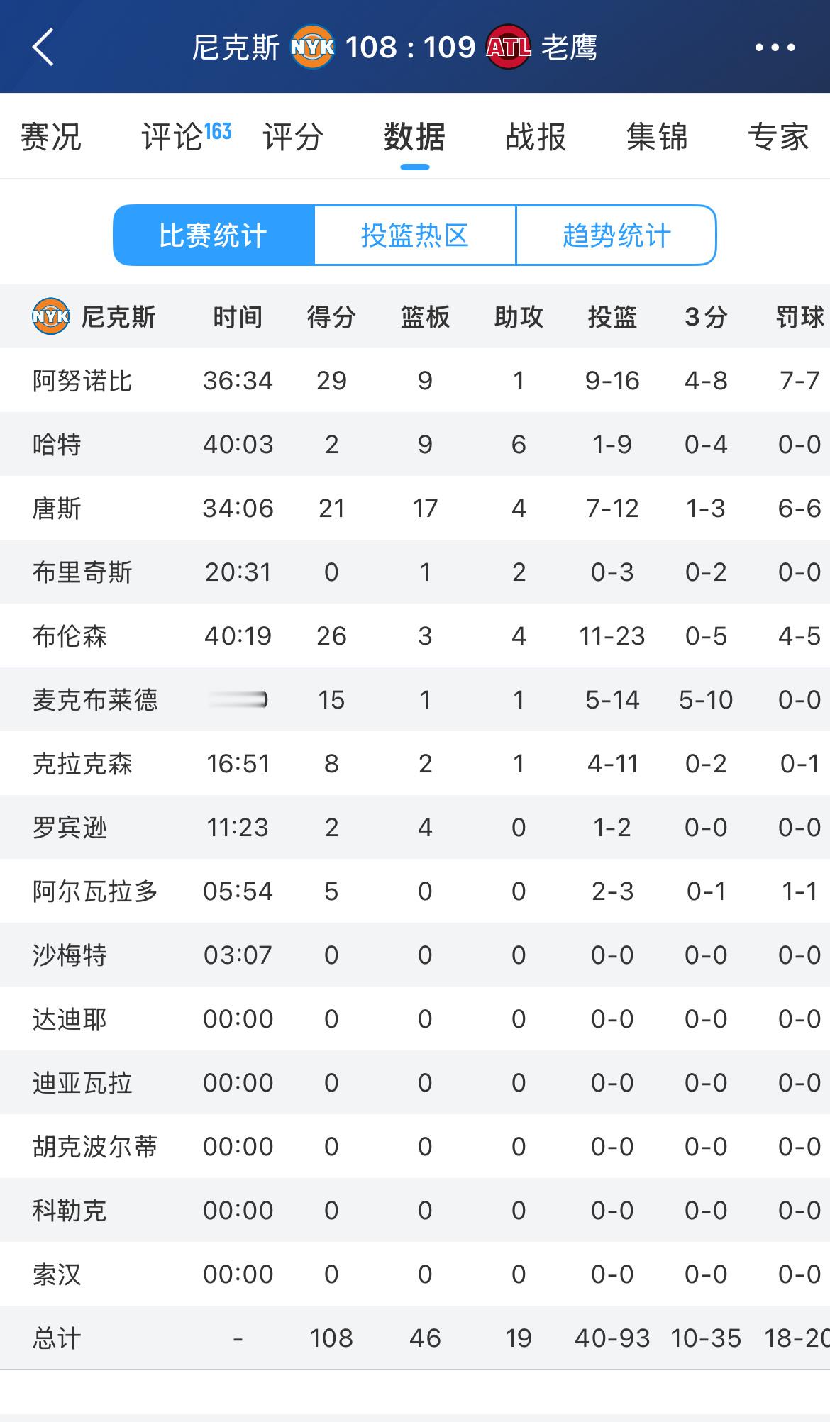 尼克斯领先1分,最后16.1秒!尼克斯vs老鹰