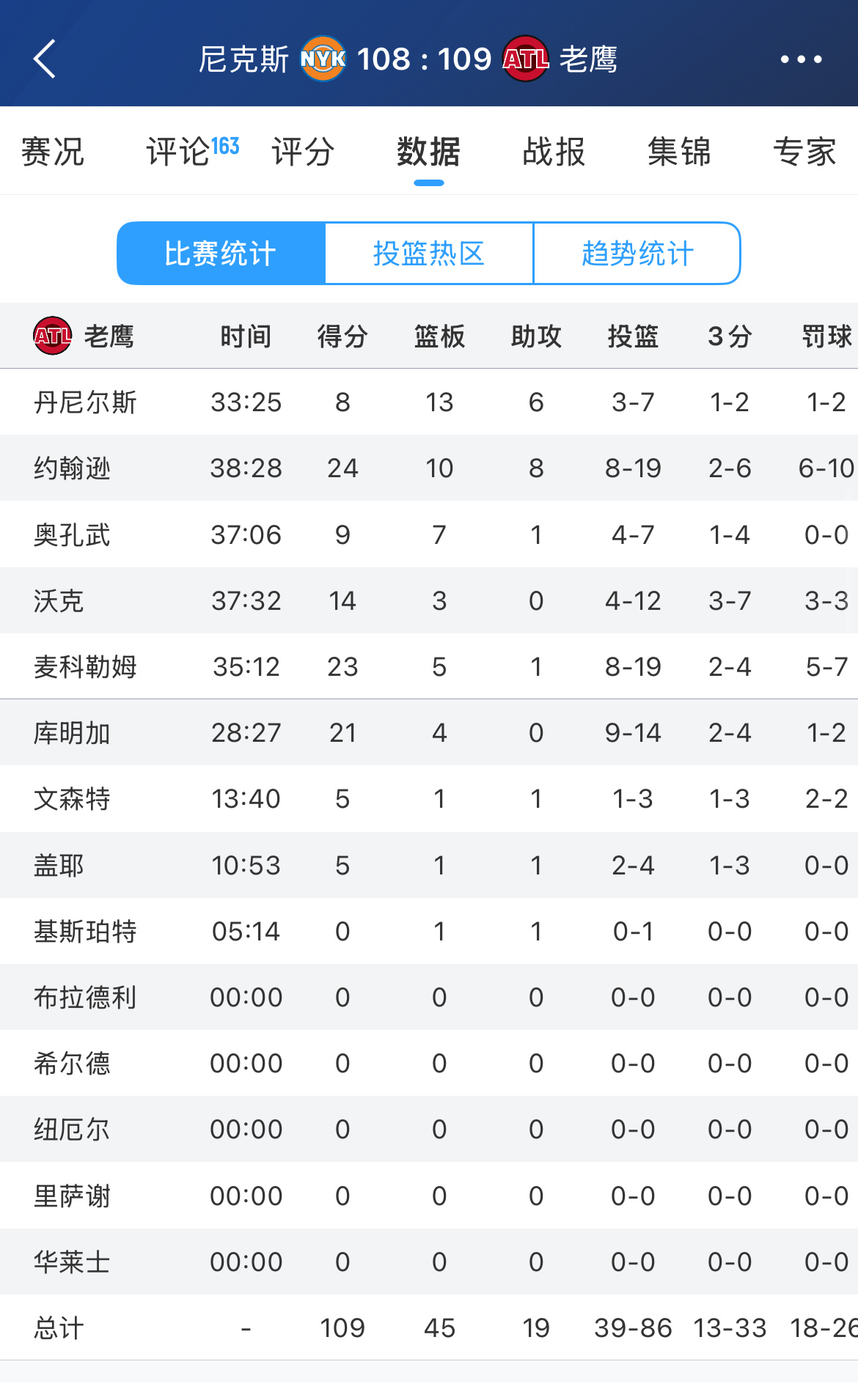 老鹰109-108战胜尼克斯!大比分2-1领先🔥