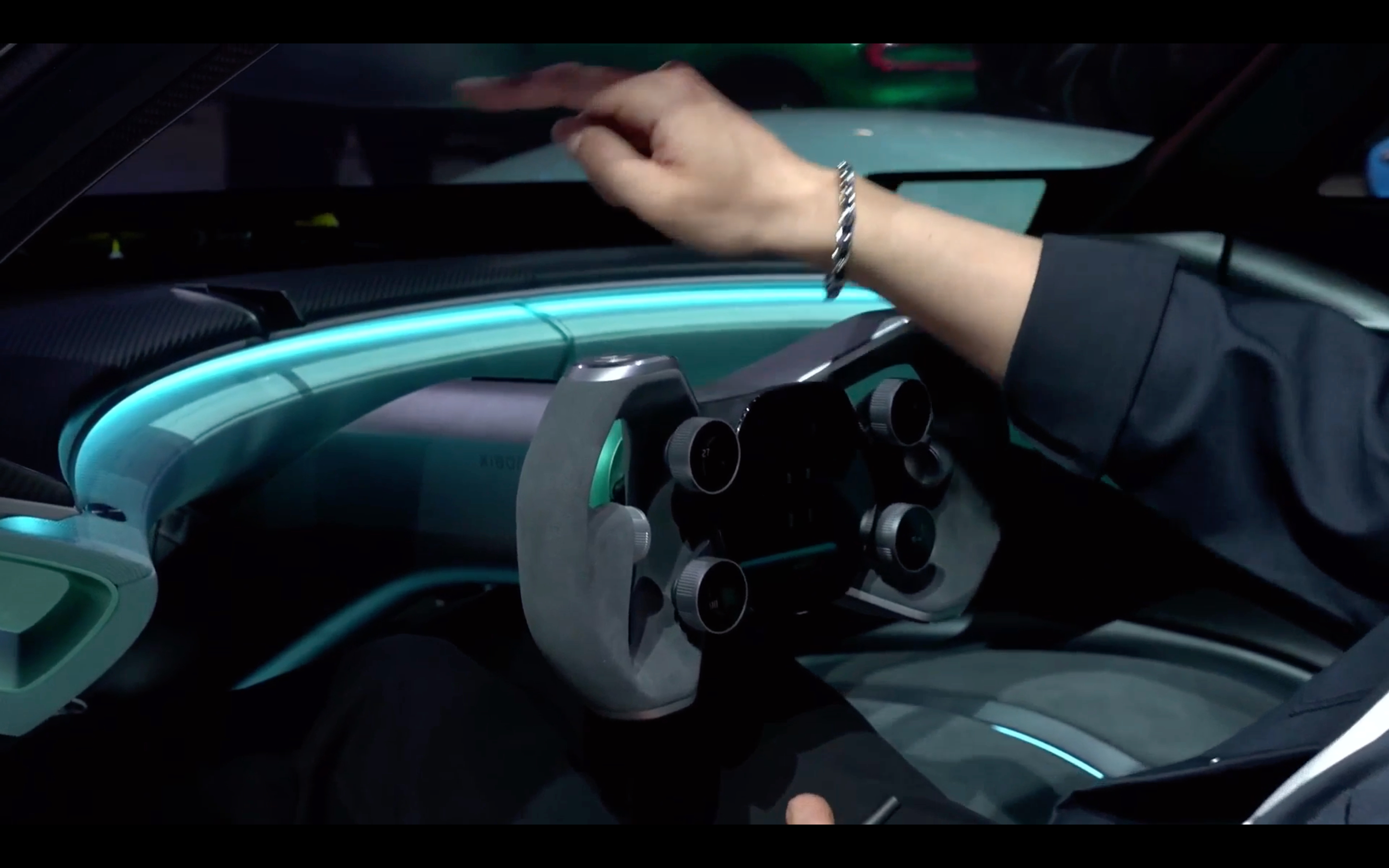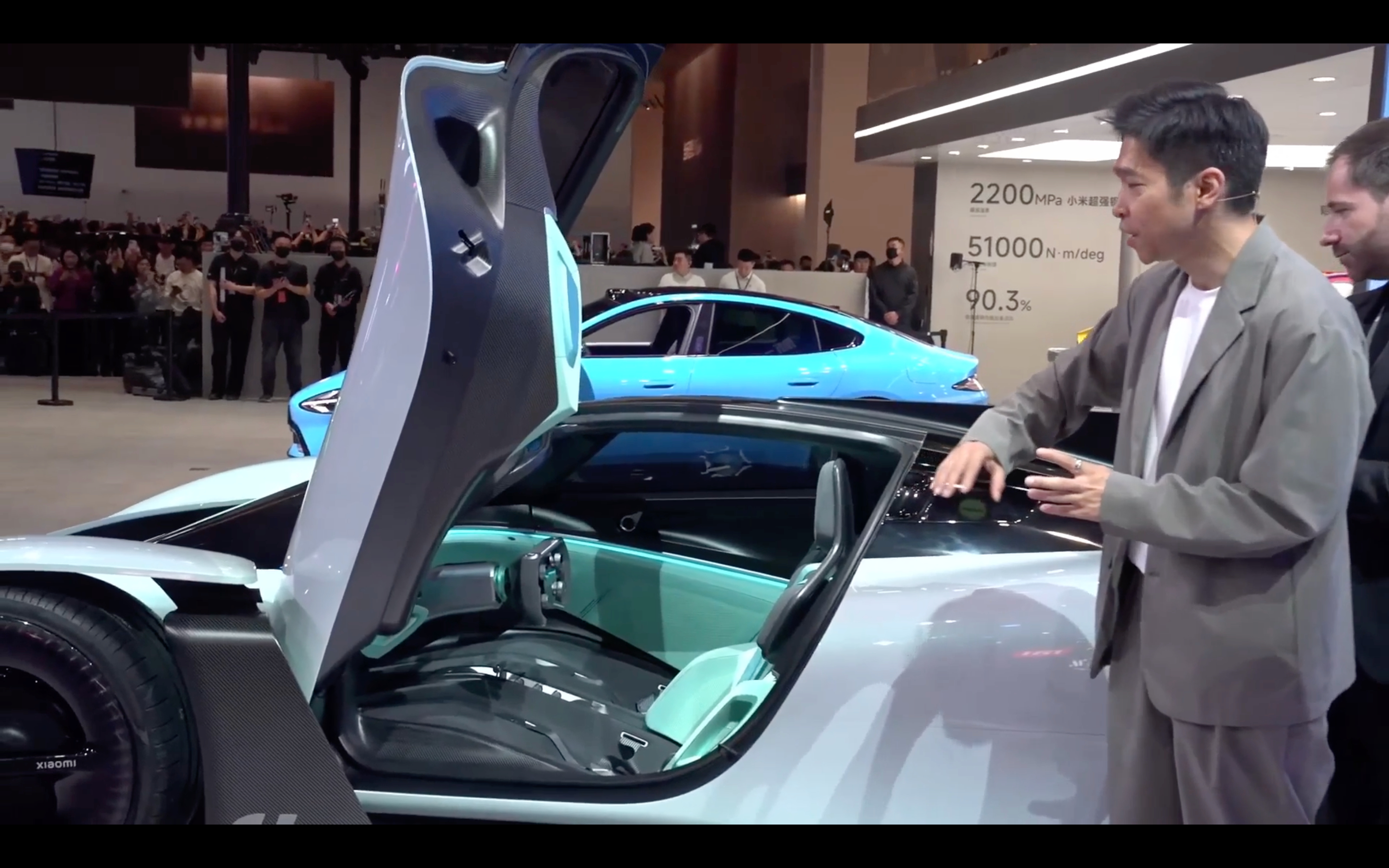 内饰设计上希望重新定义未来的驾驶座舱,兼顾超跑驾驶体验,把激烈的赛道驾驶体验和舒适结合起来,雷总也现场坐进去演示了中控屏和天际屏,实在是太有科技感了!
