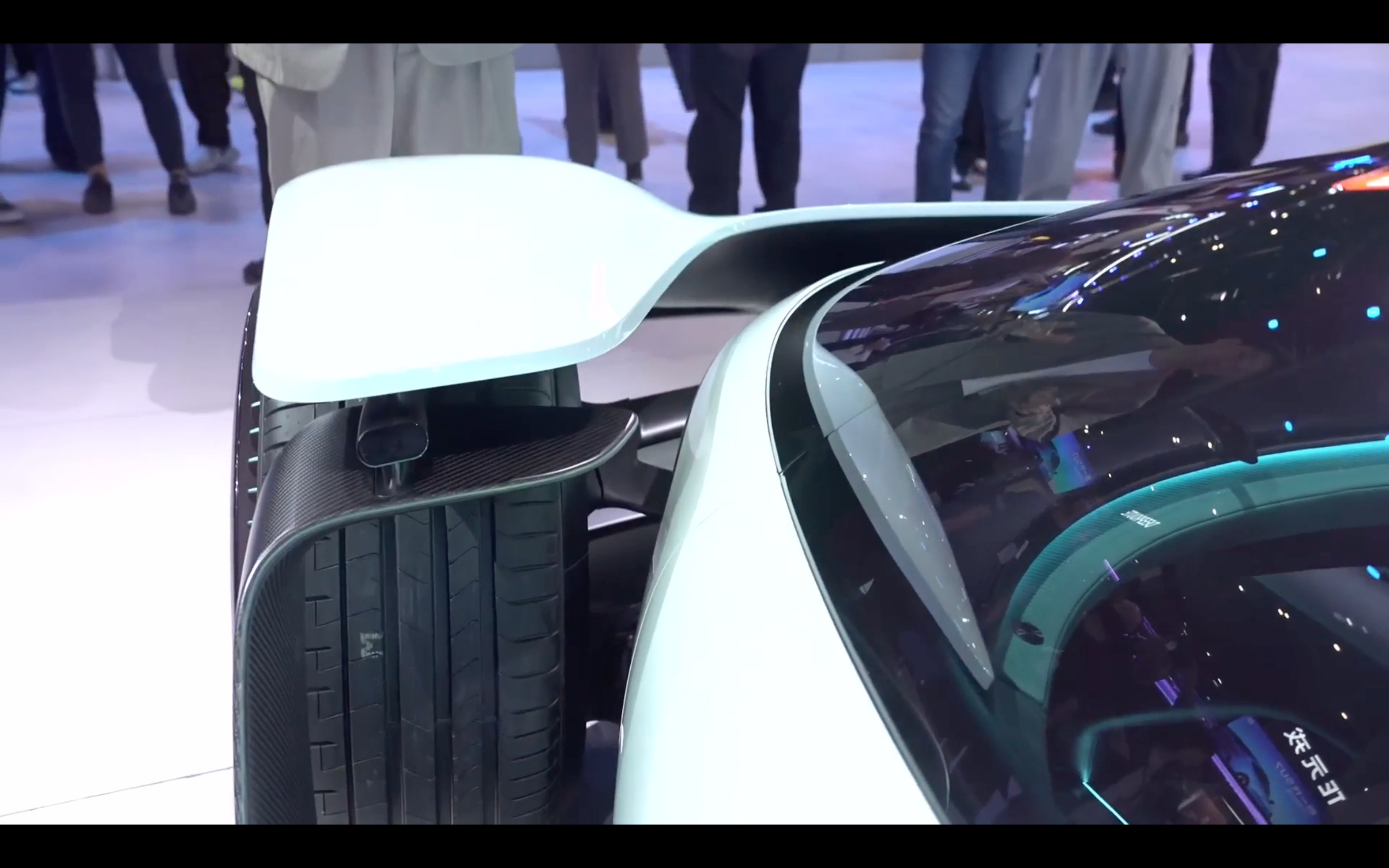 轮毂采用了磁悬浮结构,车辆运动时轮毂盖是视觉上静止的,能进一步提高气动效率。