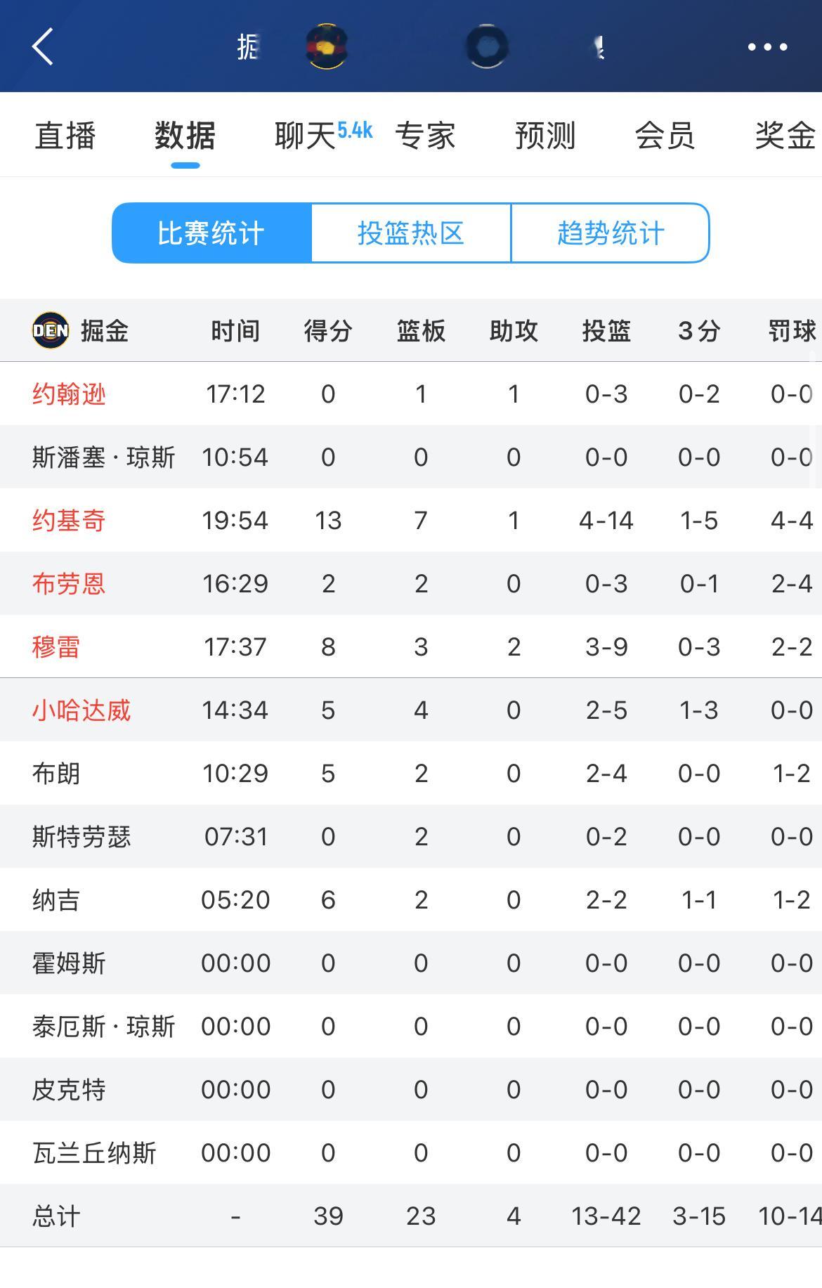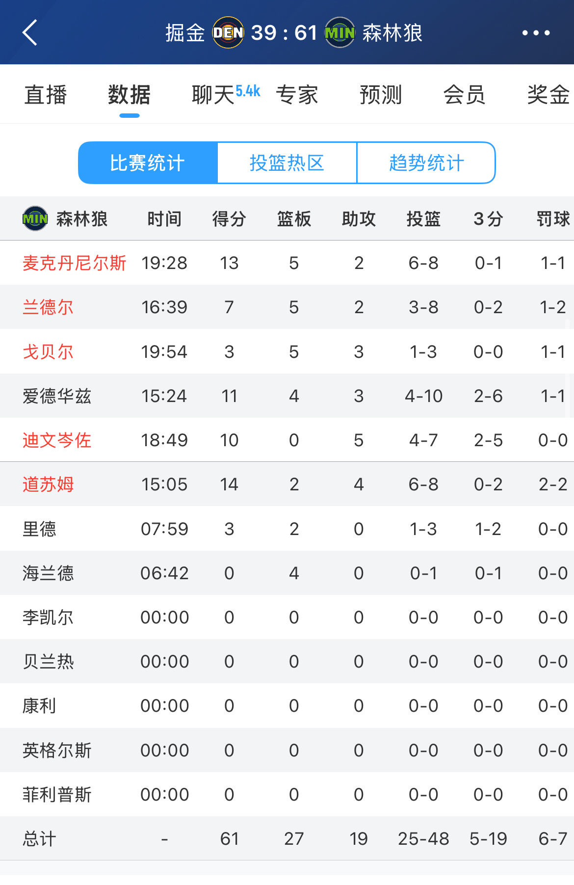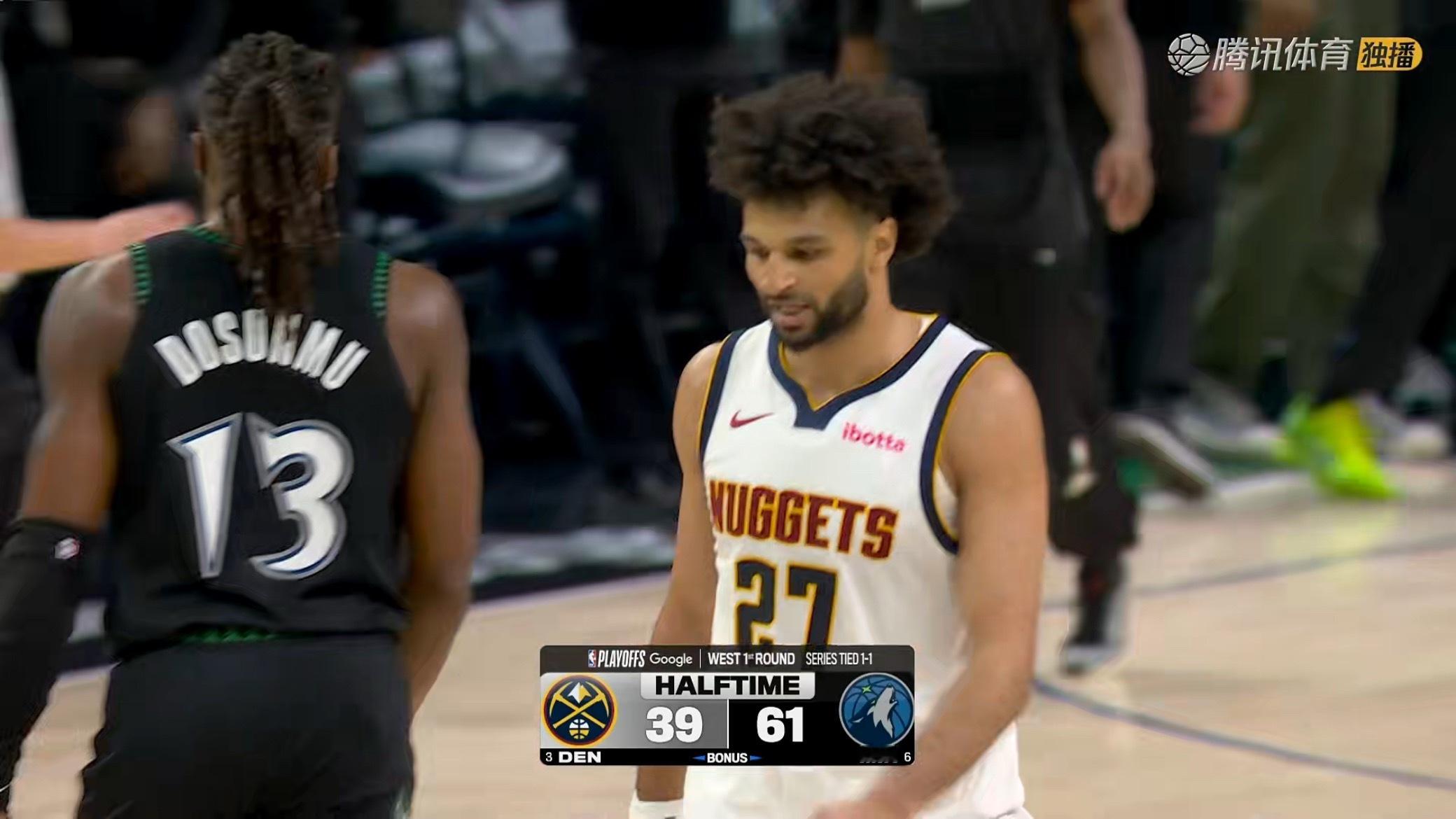 半场结束,掘金39-61落后森林狼!攻防都被压制