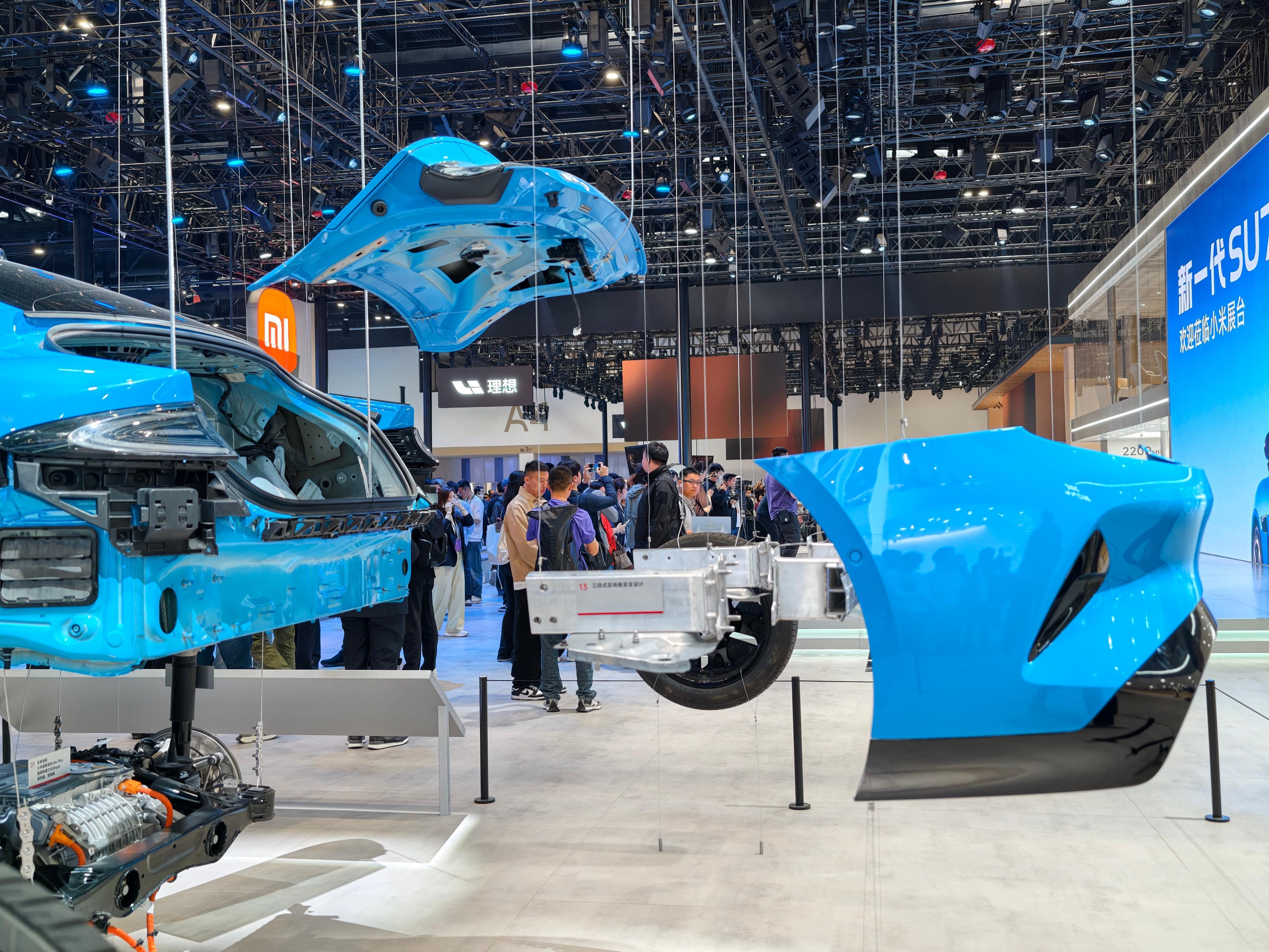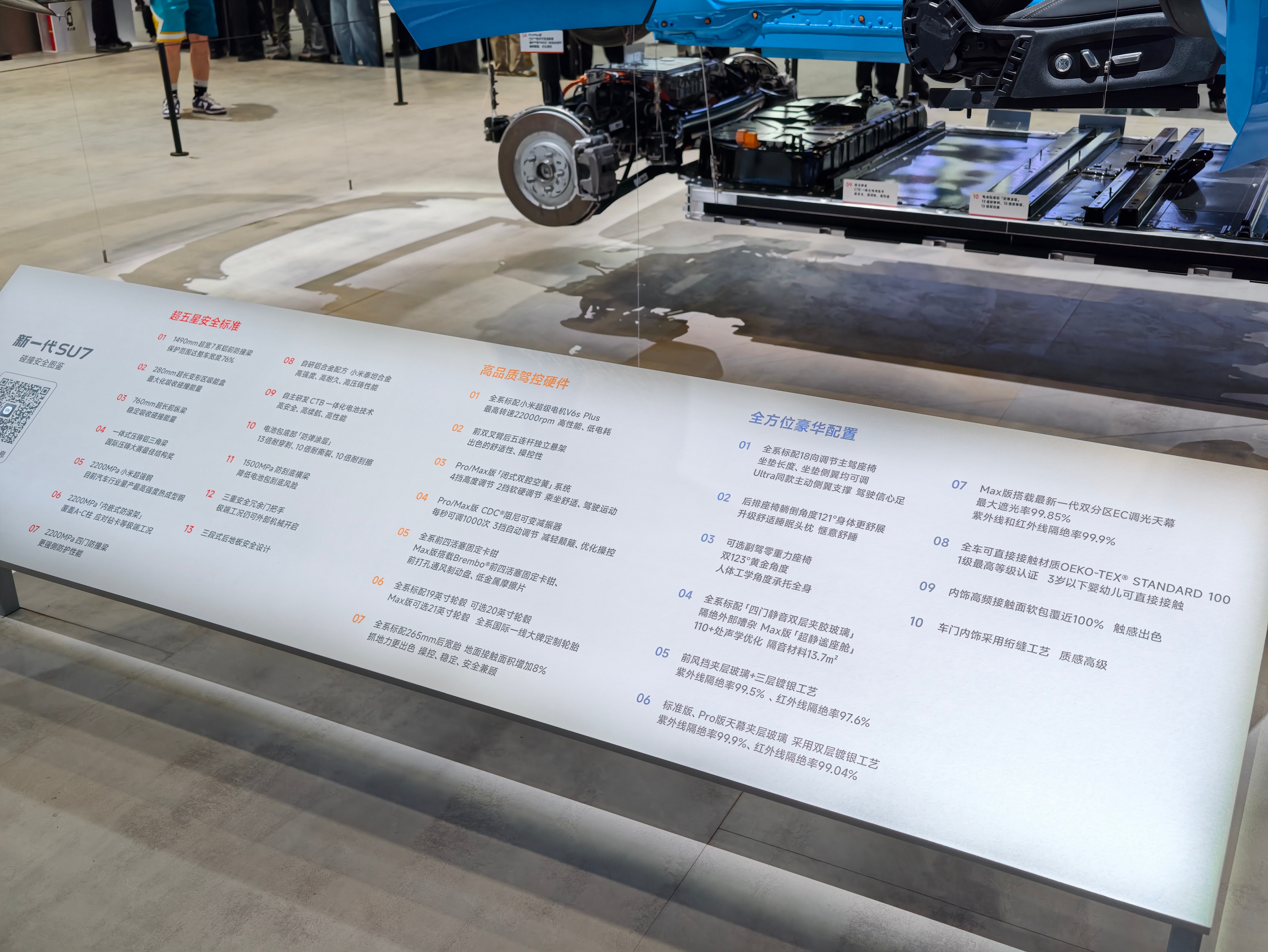 北京车展看新SU7真材实料很少见到车展现场把车拆的这么干净的厂商,看样子小米对新一代小米SU7的用料是真的很有信心。