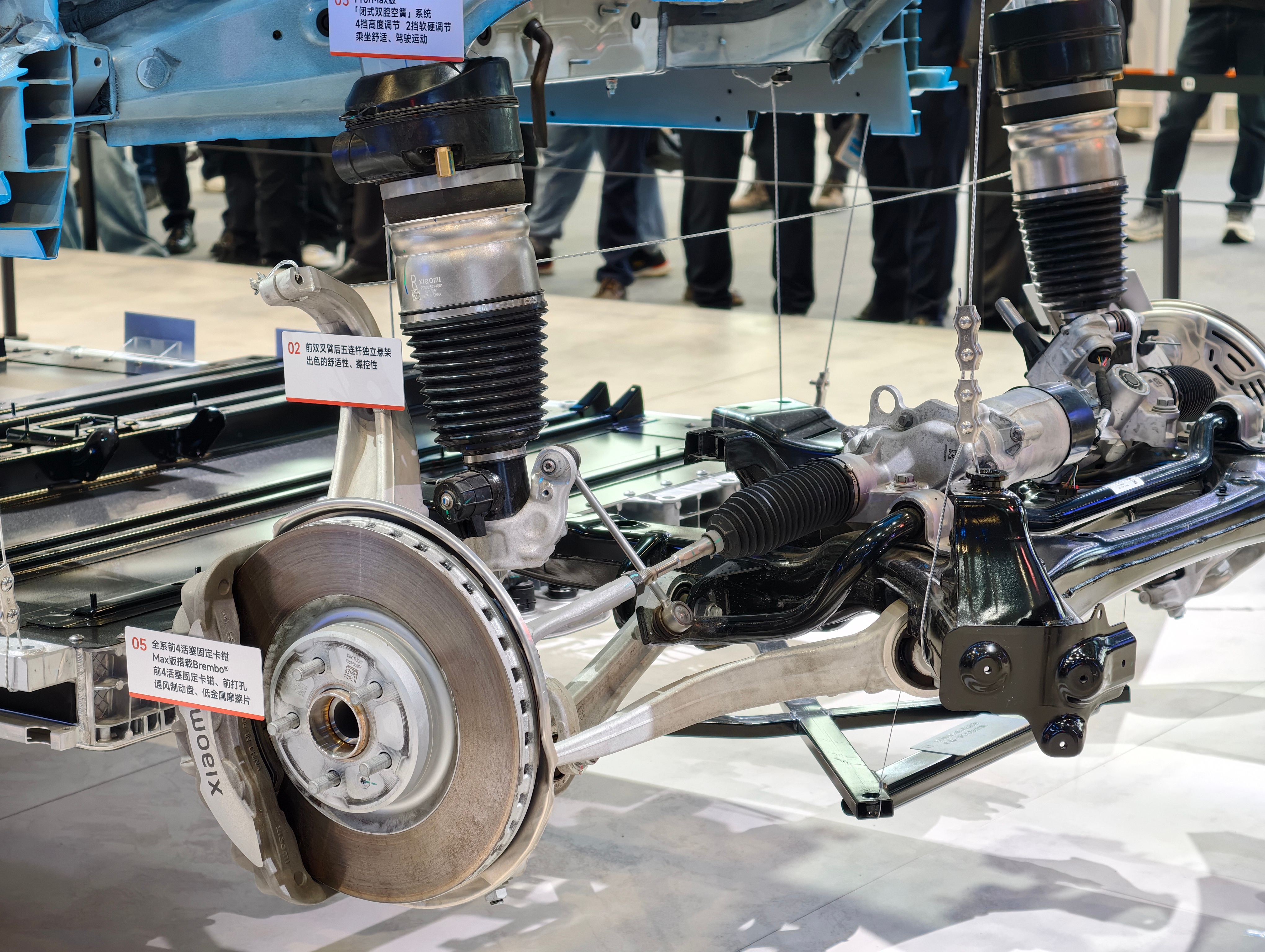 操控就更不用说了,全铝前双叉臂搭配五连杆,还有闭式双腔空悬和CDC,全系四活塞,Max四活塞Brembo卡钳,还有265宽胎,零百加速和制动也都是非常优秀的水准~
