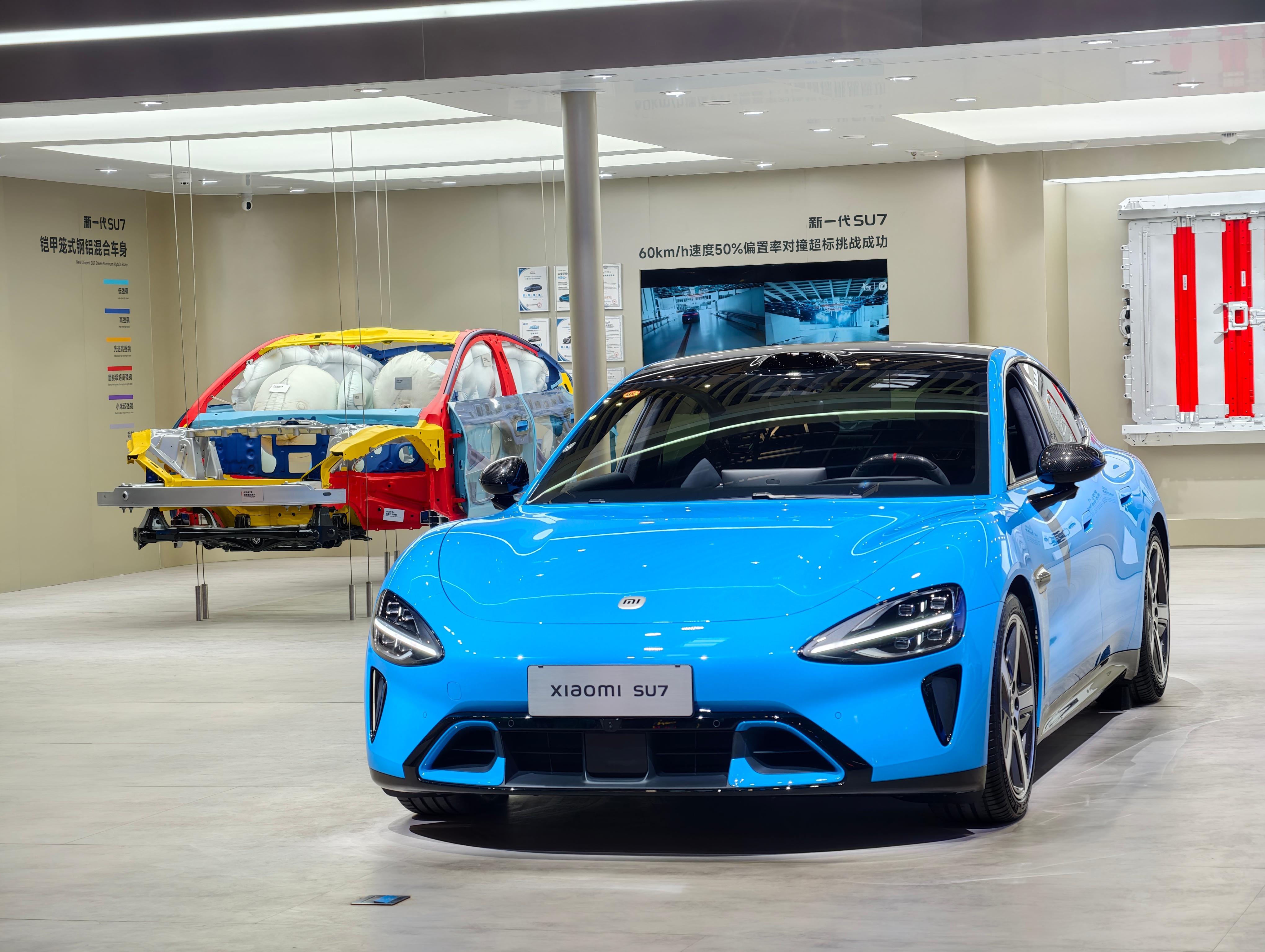 我仔细看了一下,用料确实很顶,你像前防撞梁已经达到了整车宽度的76%,而且用的是7系铝,包括后面还有280mm超长行程的吸能盒来吸收碰撞能量,一体压铸铝三角梁也是获得了国际大奖,包括行业顶级的2200Mpa超强钢、CTB一体化电池搭配防弹涂层,三重安全冗余门把手…安全上新一代小米SU7是完全不妥协的。