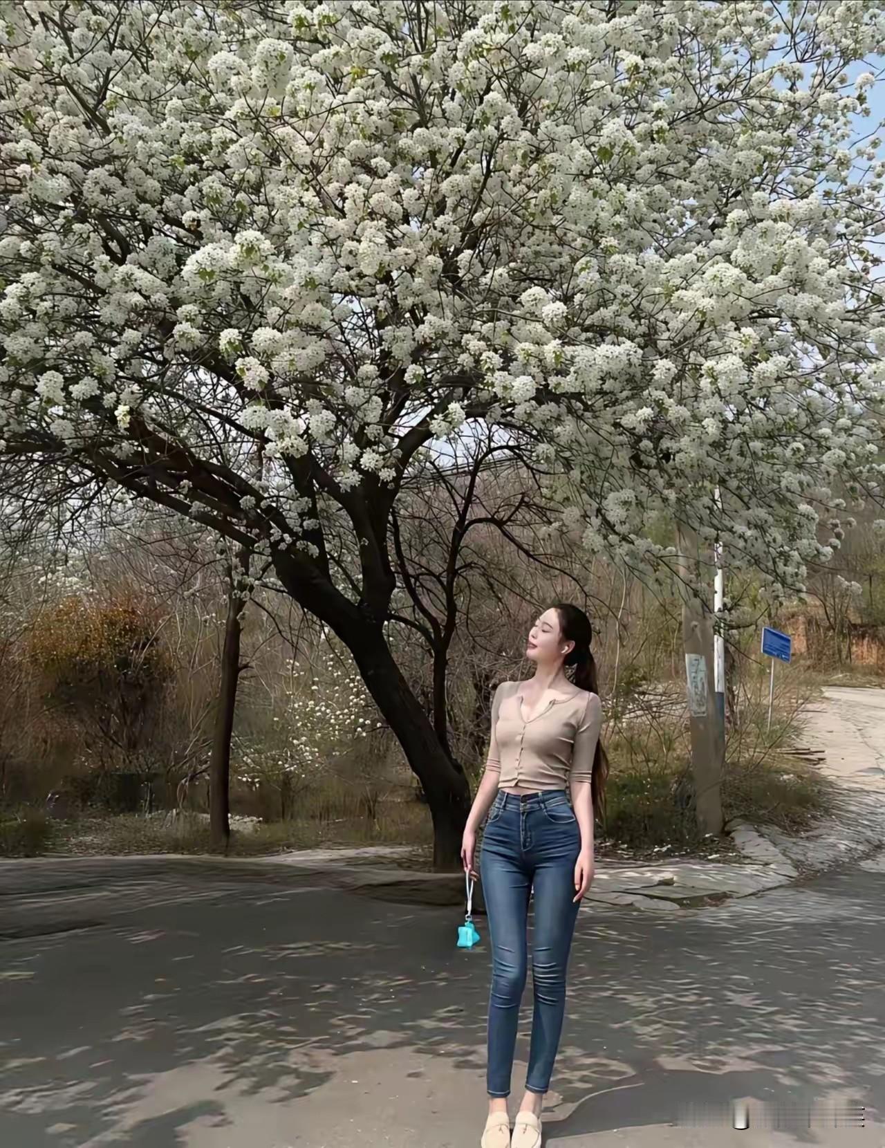 梨花树下遇佳人,眉眼温柔气质干净,每一帧都是春日浪漫