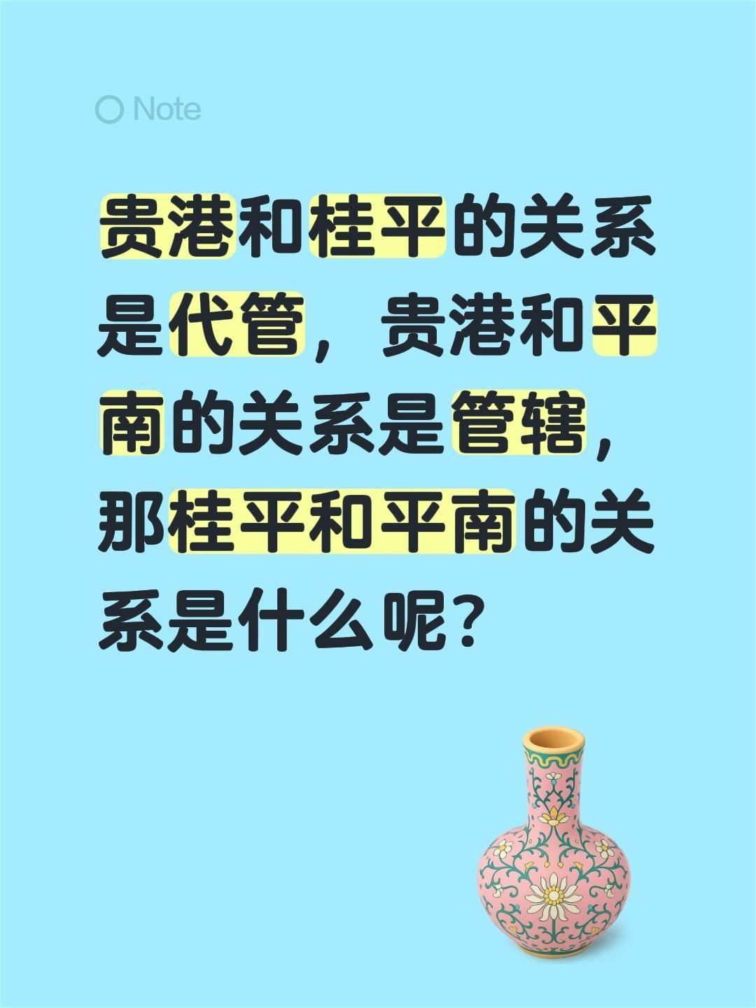 贵港和桂平的关系是代管,贵港和平南的关系是管辖,那桂平和平南的关系是什么呢?城市